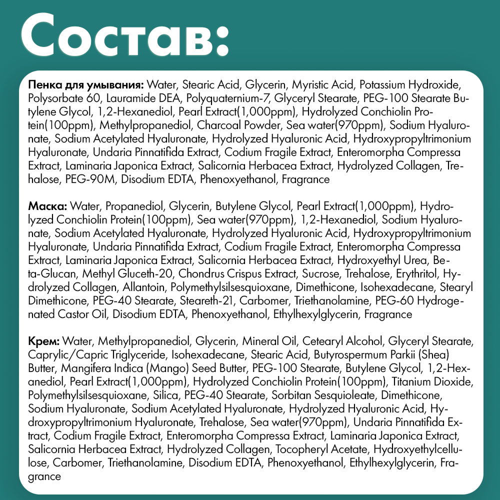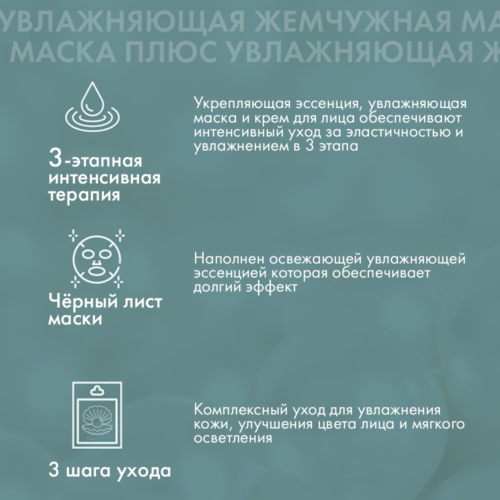 Маски для лица трехшаговый уход MARINE LUMINOUS PEARL DEEP MOISTURE MASK PEARL, 10 штук