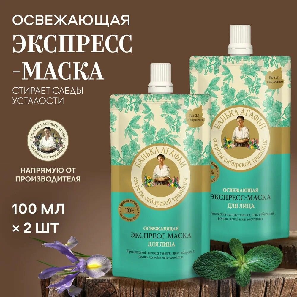 Экспресс-маска для лица Освежающая Рецепты бабушки Агафьи Банька Агафьи, 2 шт по 100 мл интересное: