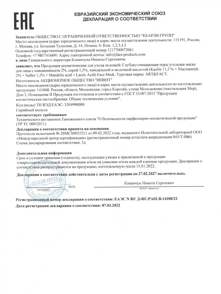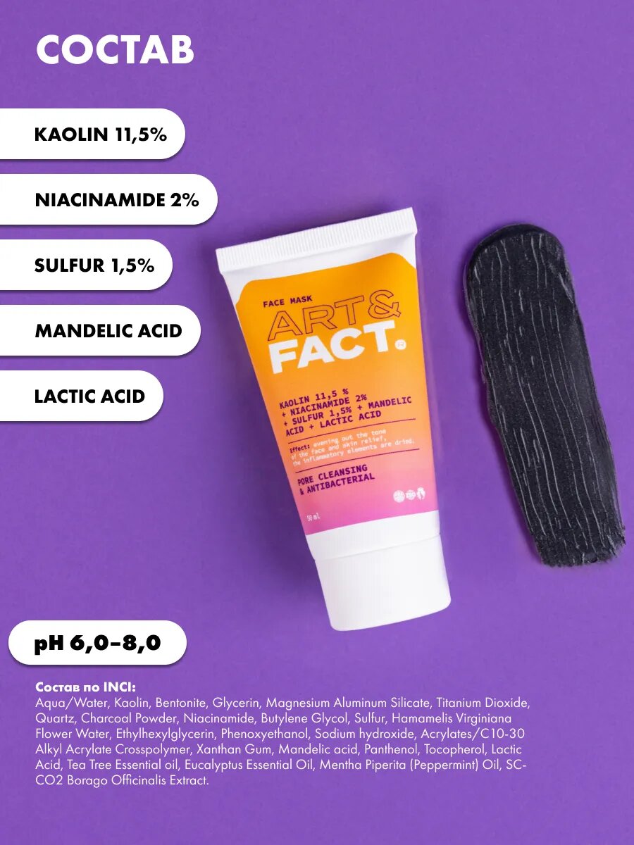 Очищающая угольная маска для лица, 50 мл интересное: