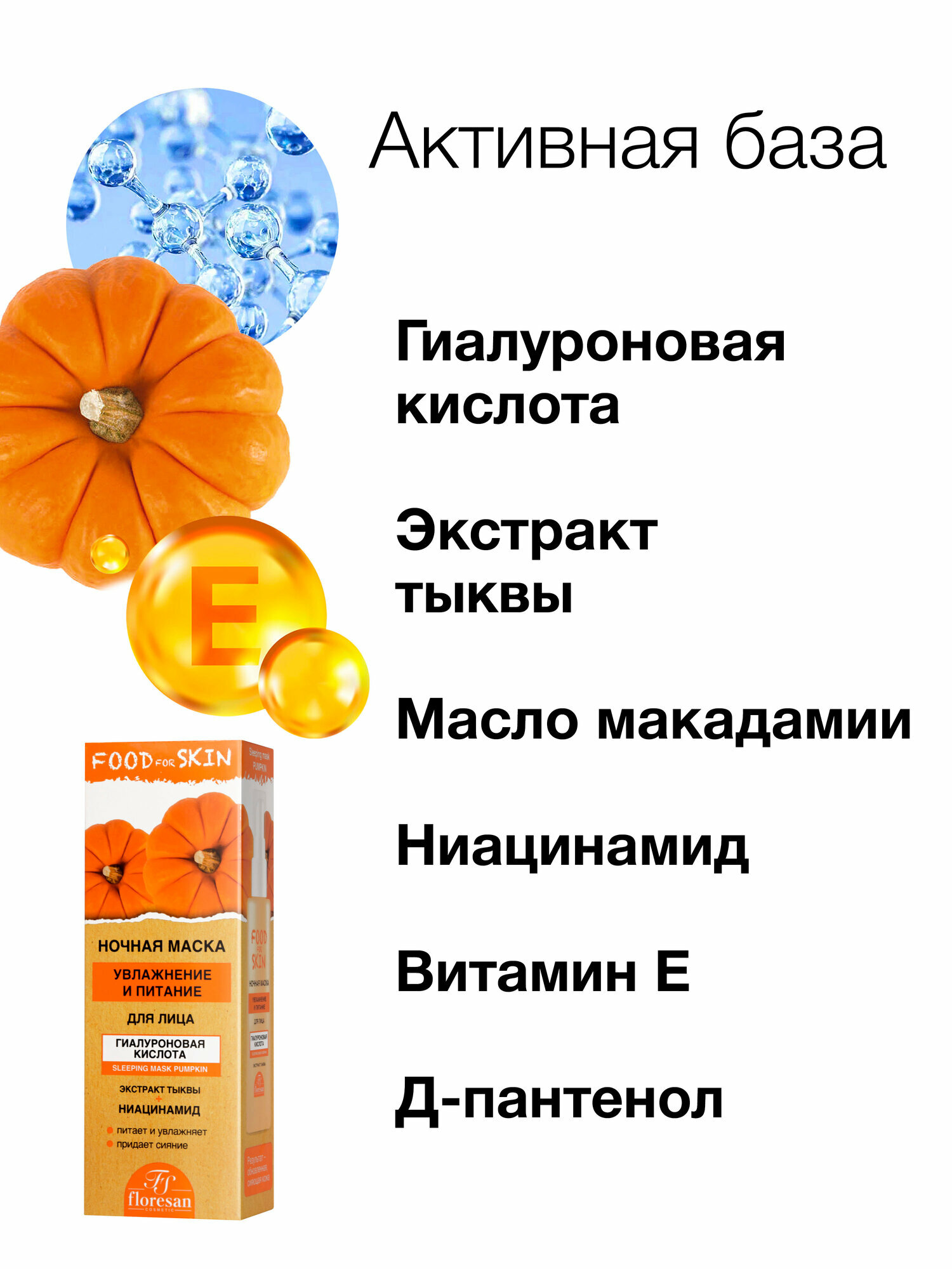 Ночные маски для лица Floresan Food For Skin Тыква + Гранат, 2х75мл интересное: