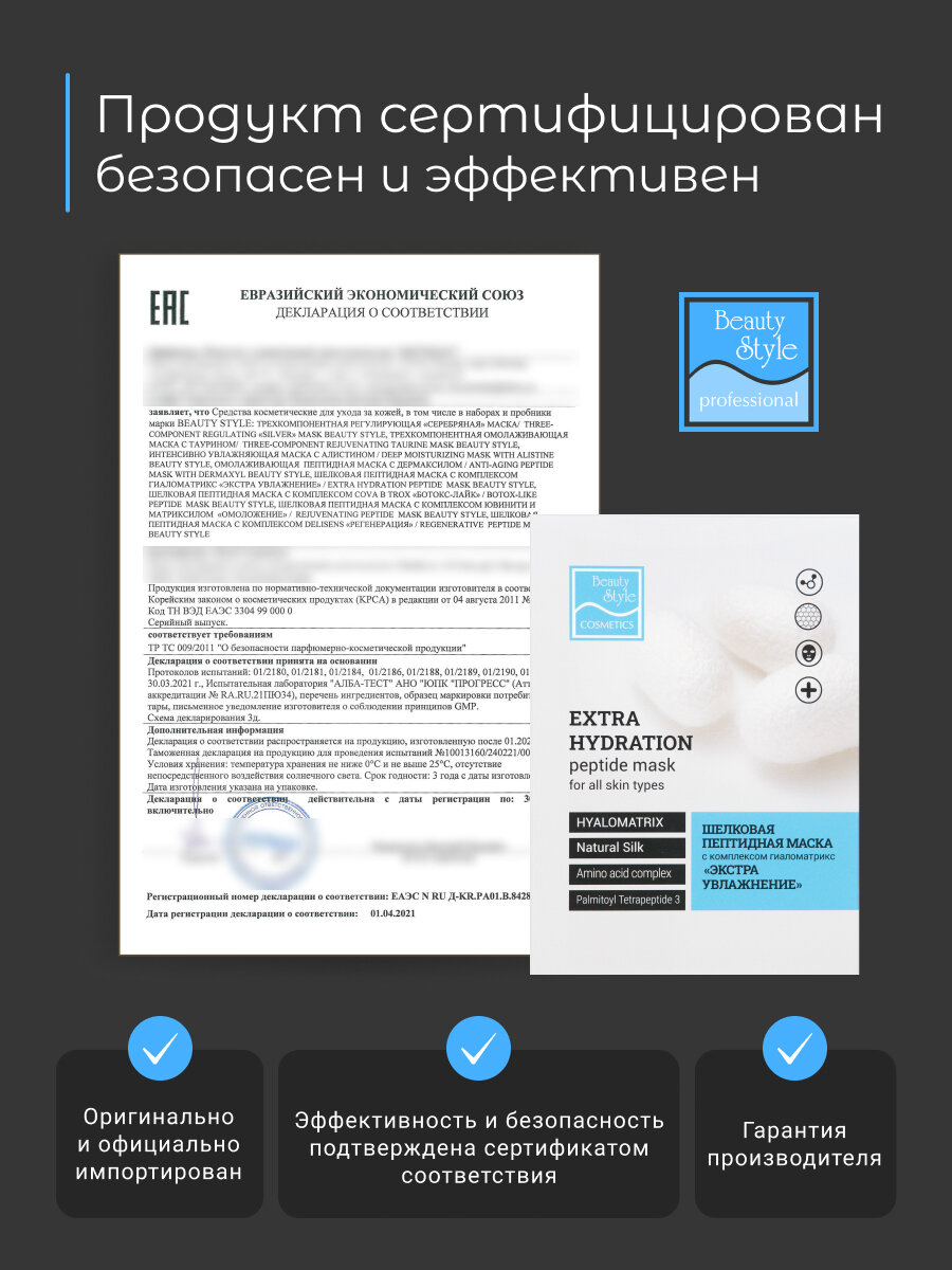 Beauty style, Тканевые маски для лица с пептидами Экстра увлажнение, 10 шт интересное: