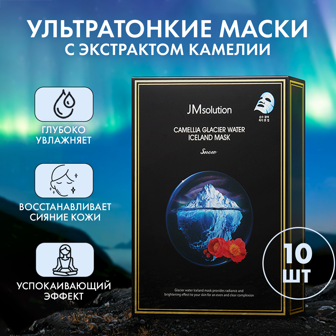 Купить Маска для лица с экстрактом камелии JMsolution CAMELLIA GLACIER WATER ICELAND MASK SNOW, Корея 10 штук