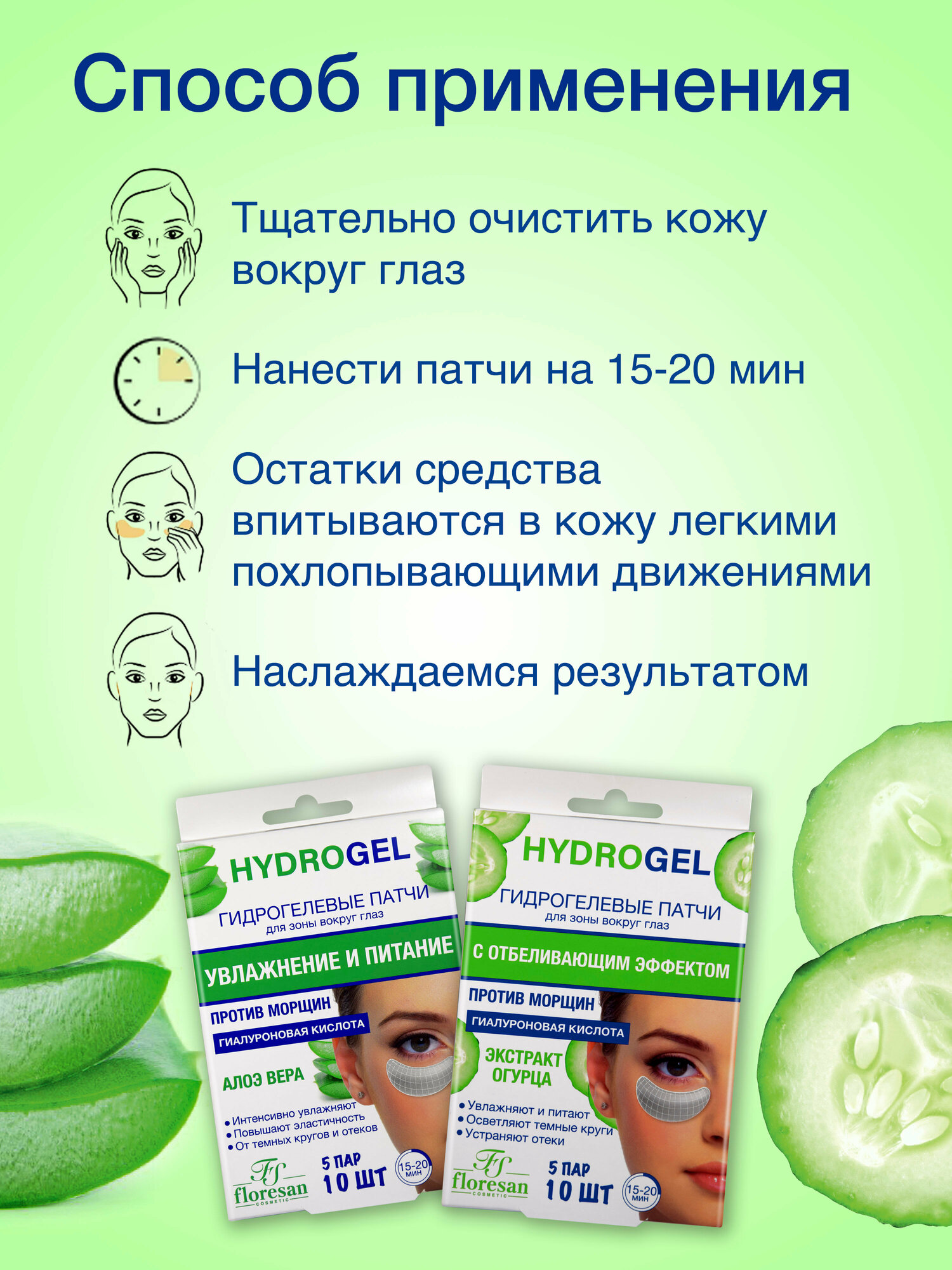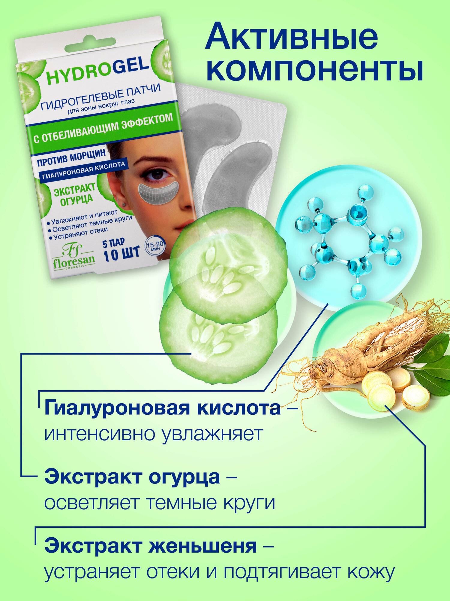 Гидрогелевые патчи Floresan HYDROGEL против морщин и с отбеливающим эффектом, 2х10 шт. интересное:
