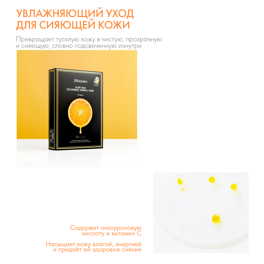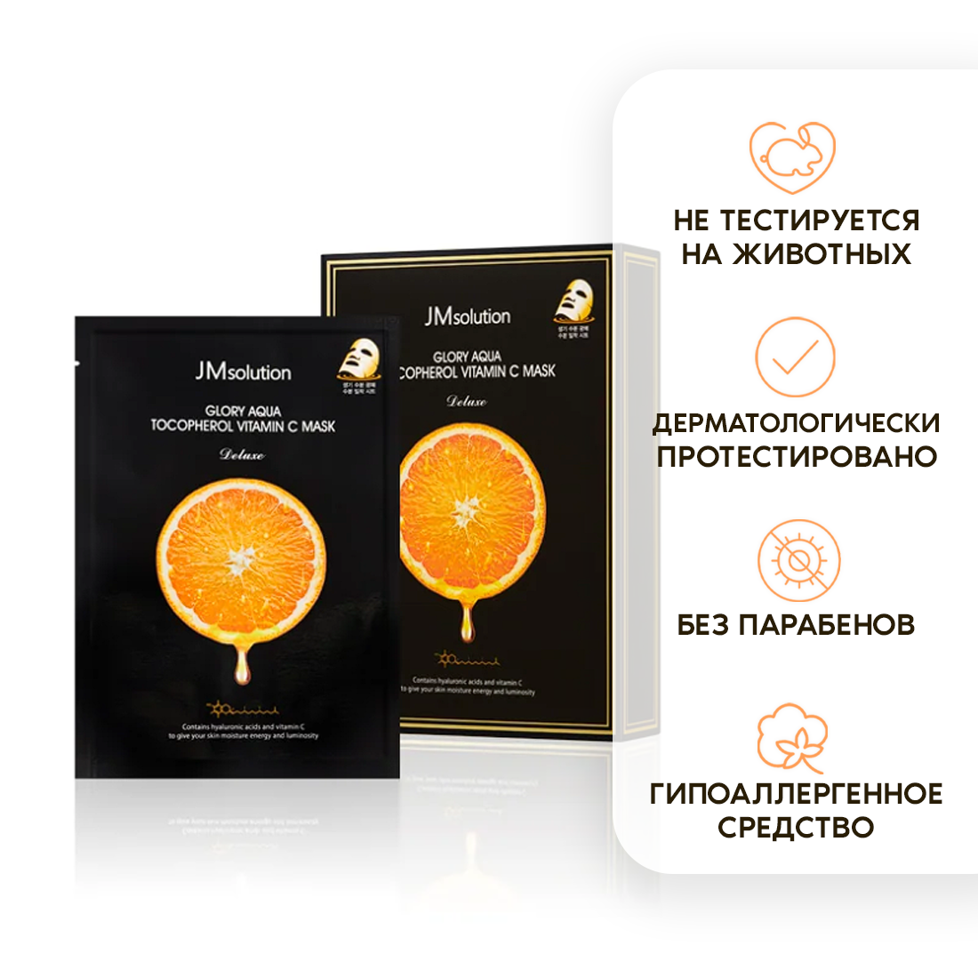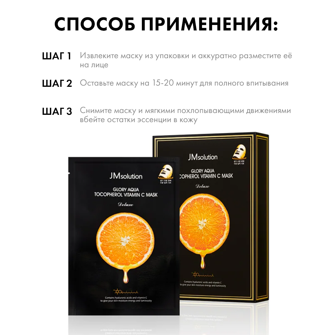 Купить Маска для лица с витамином С и пептидами JMsolution GLORY AQUA TOCOPHEROL VITAMIN C MASK DELUXE, Корея 10 шт