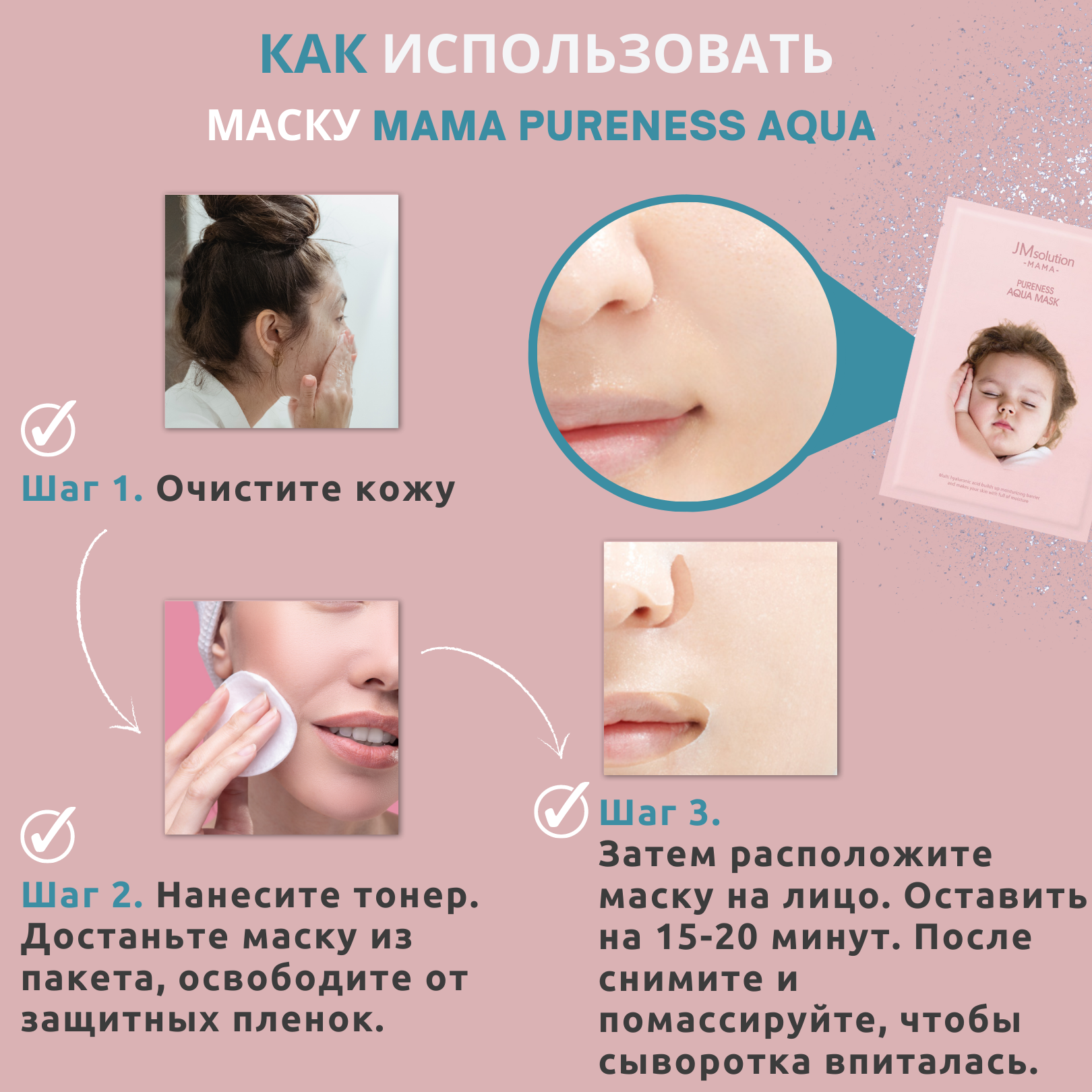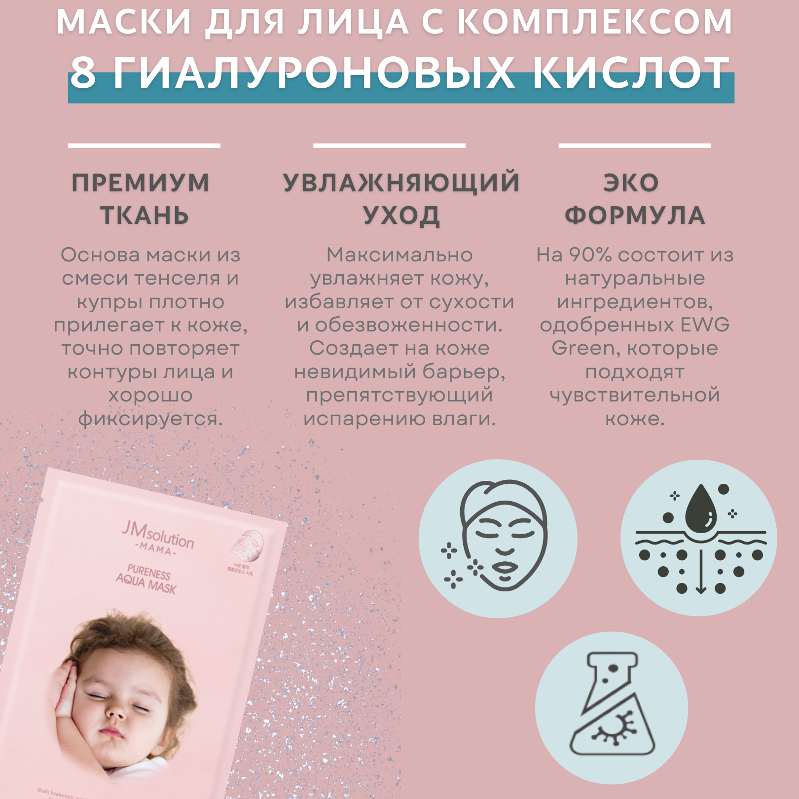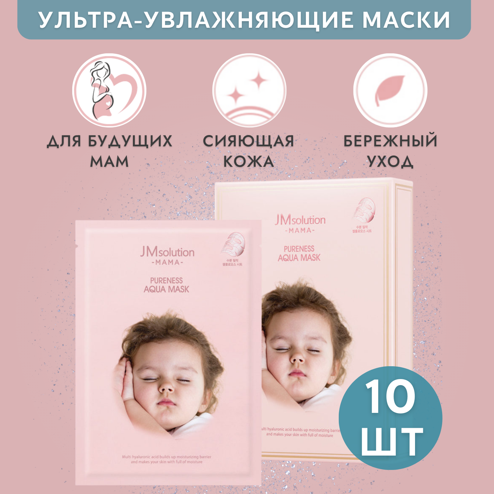 Маски тканевые для лица с ниацинамидом JMsolution MAMA PURENESS AQUA MASK, Корея 10 шт интересное: