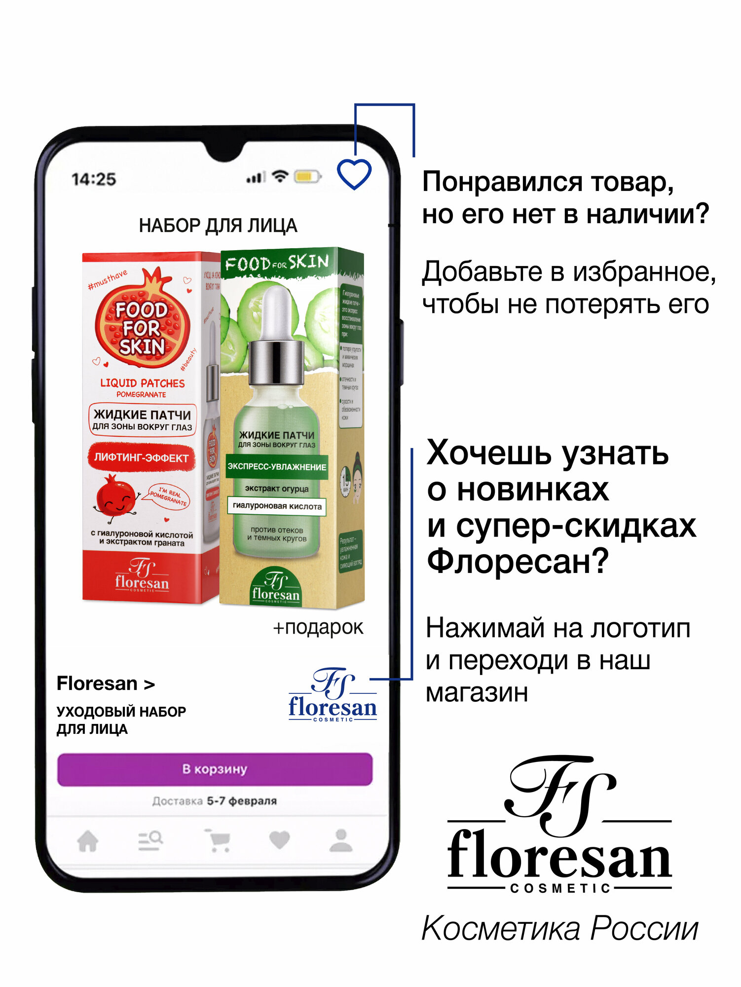 Жидкие патчи для зоны вокруг глаз Floresan Food For Skin, 2х30 мл интересное: