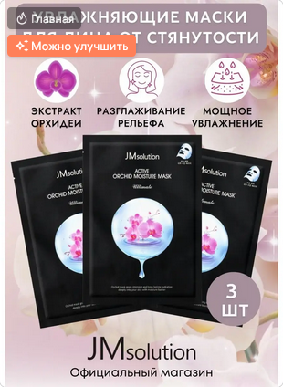 Маска для лица для восстановления кожи JMsolution ACTIVE ORCHID MOISTURE MASK ULTIMATE, Корея 3 штуки интересное: