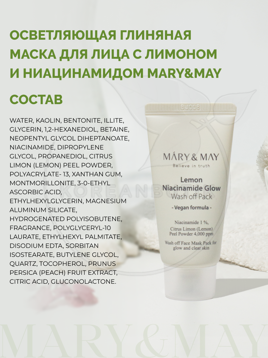 Маска для лица глиняная c ниацинамидом | Mary&May Lemon Niacinamide Glow Wash Off Pack 30g интересное: