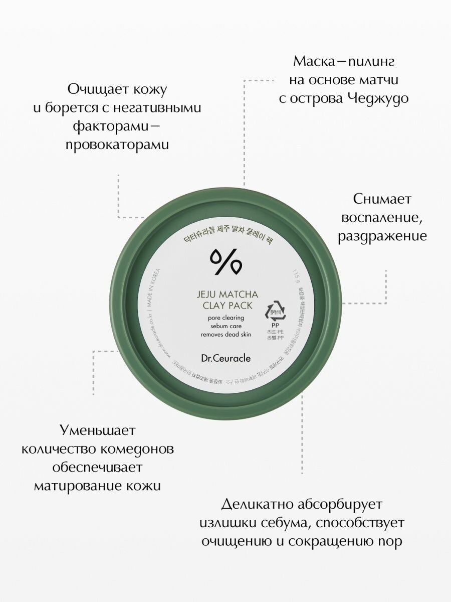 Dr.Ceuracle Очищающая глиняная маска с матчей Jeju Matcha Clay Pack, 115 гр интересное: