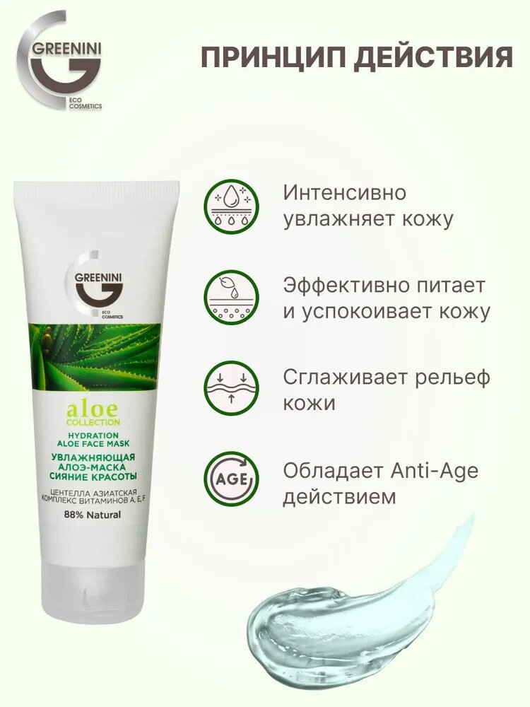 Greenini Маска увлажняющая Сияние красоты Алоэ , Greenini 75 мл интересное: