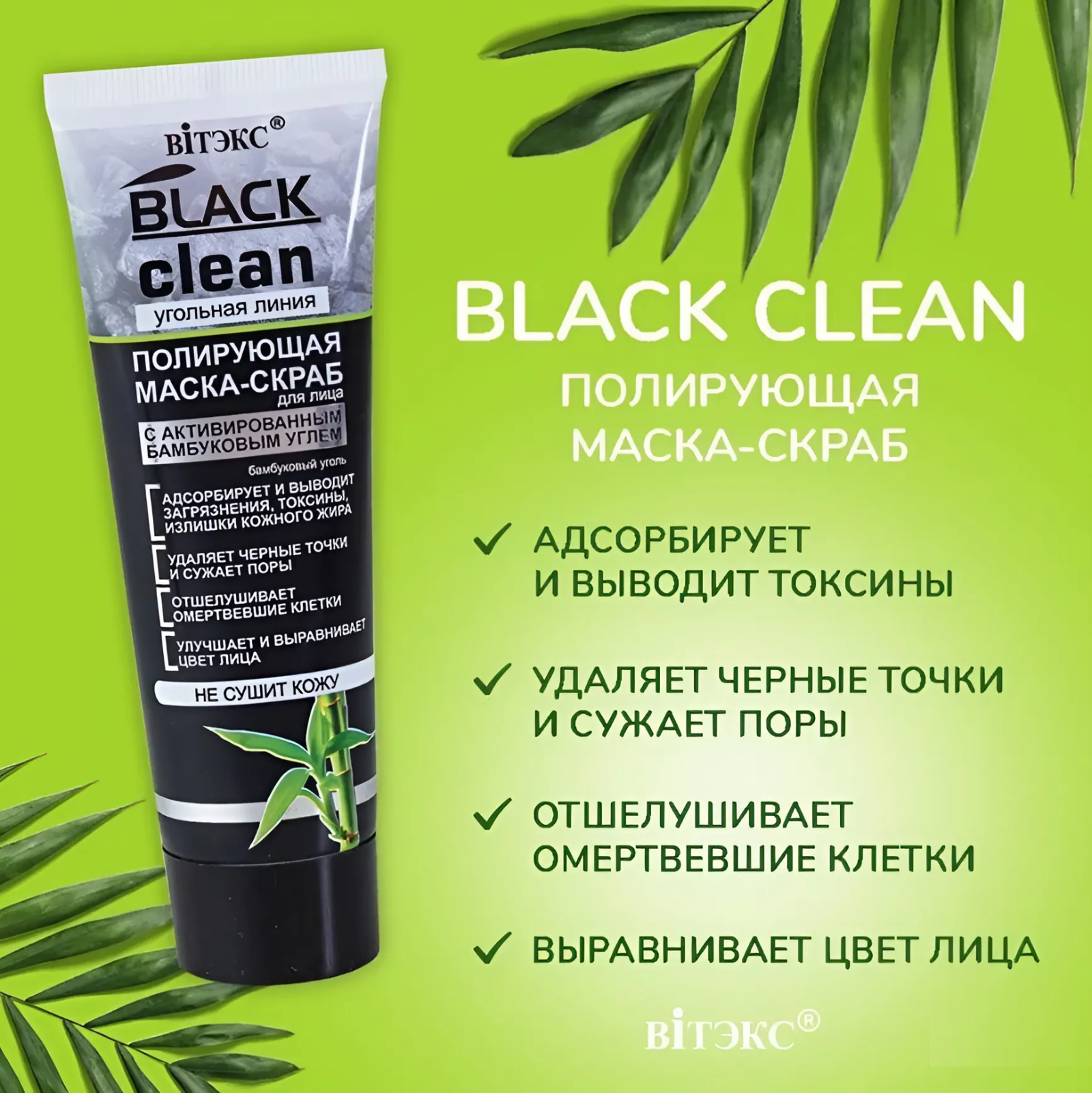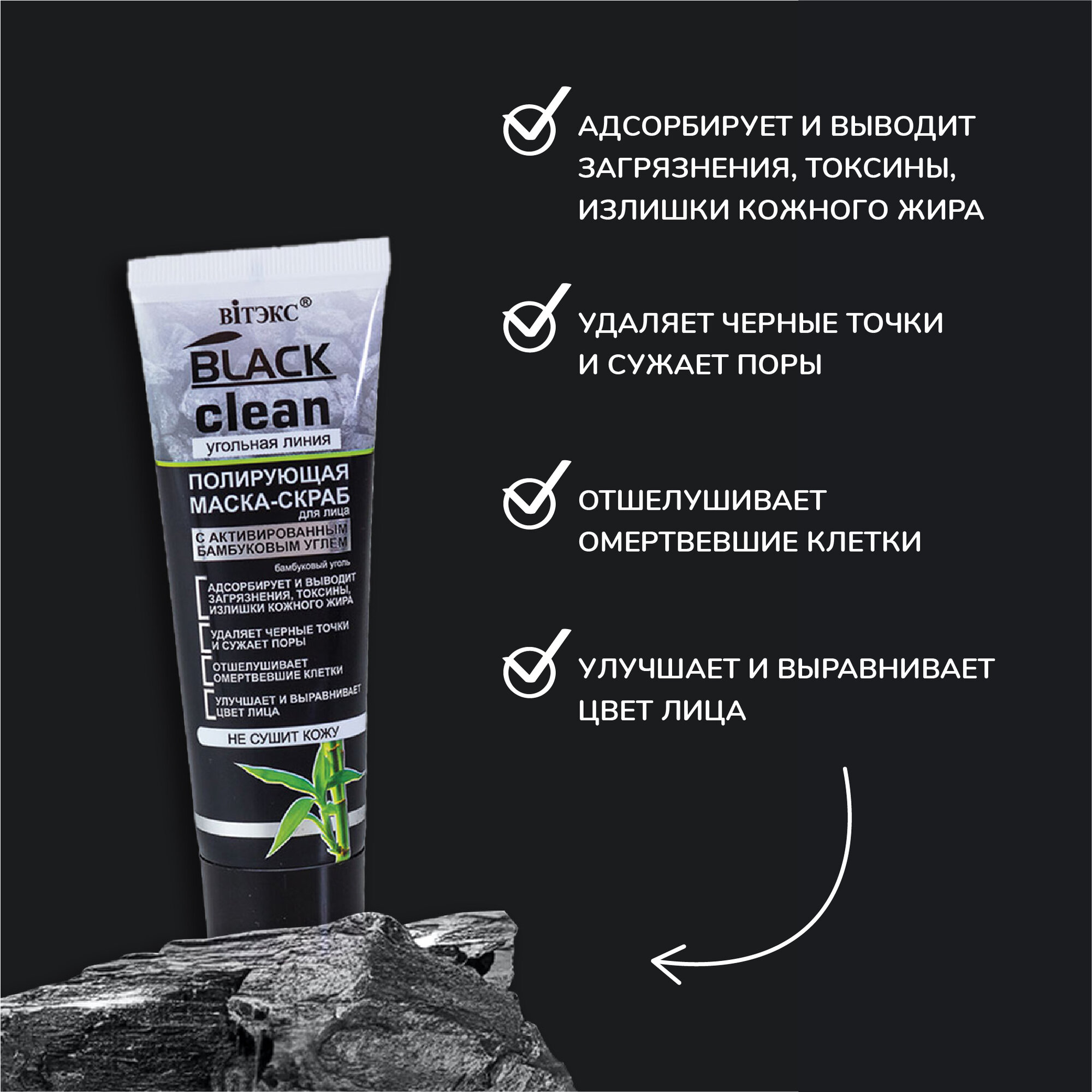 Витэкс Маска-скраб для лица "Black clean" полирующая, с активированным бамбуковым углем, 75 мл интересное: