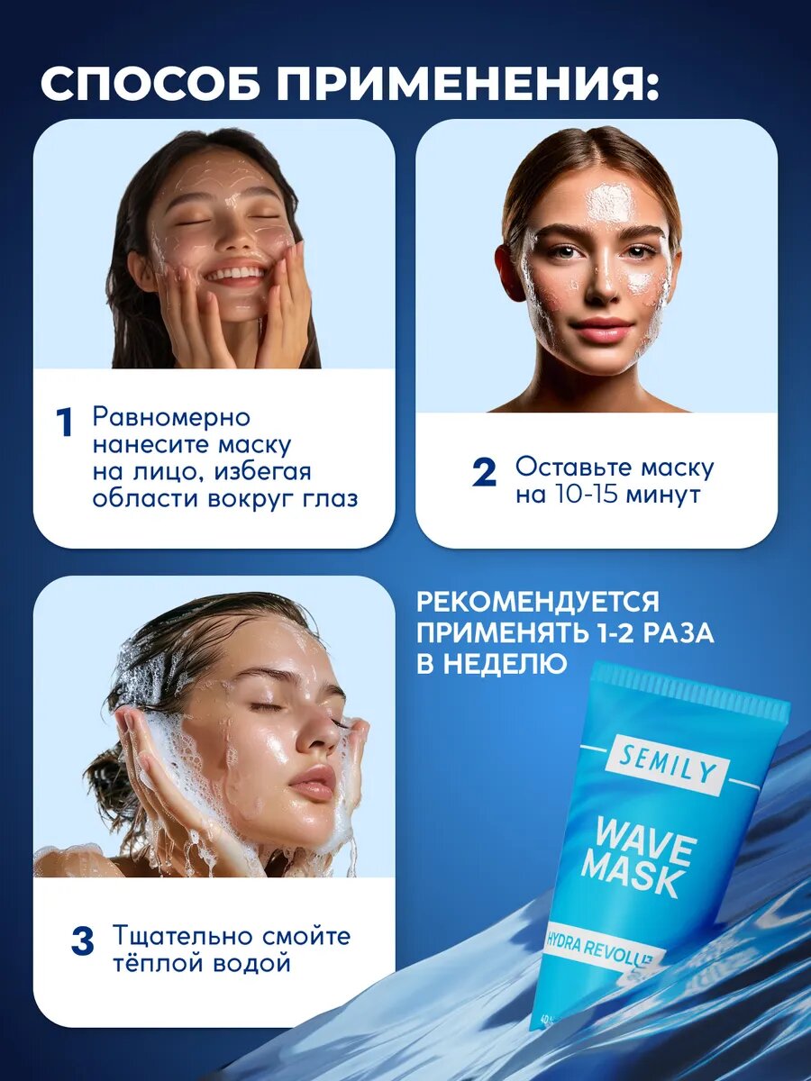 Маска для лица Semily, увлажняющая с гиалуроновой кислотой и коллагеном HYDRA REVOLUTION, 50 мл интересное: