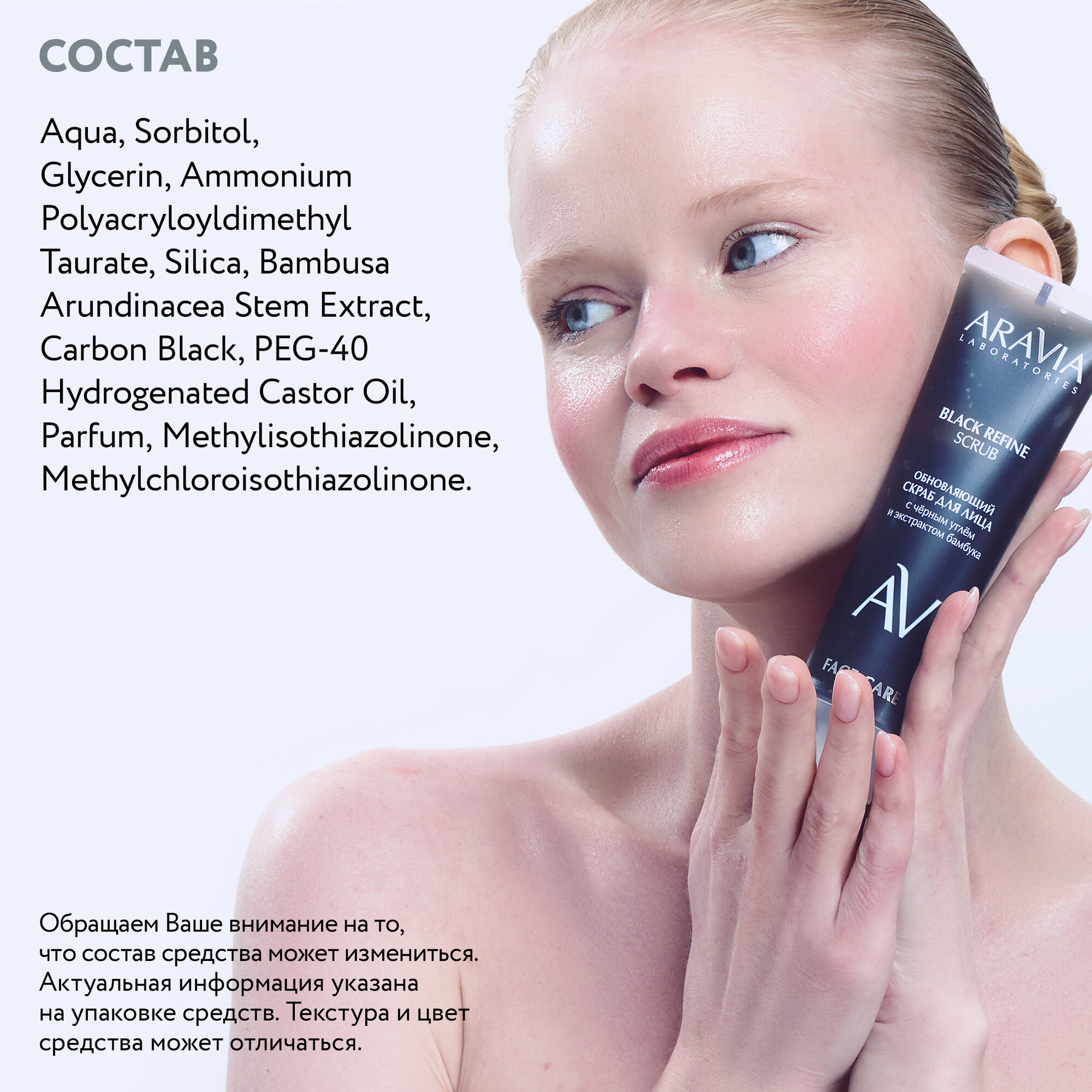 ARAVIA Обновляющий скраб для лица с черным углём и экстрактом бамбука Black Refine Scrub, 100 мл интересное:
