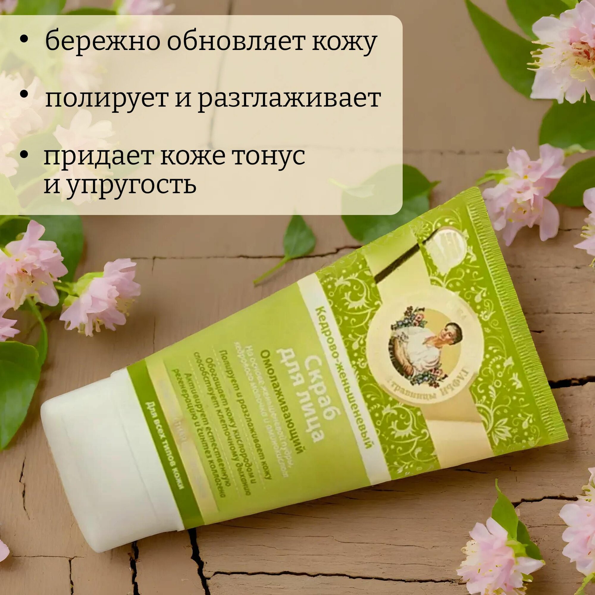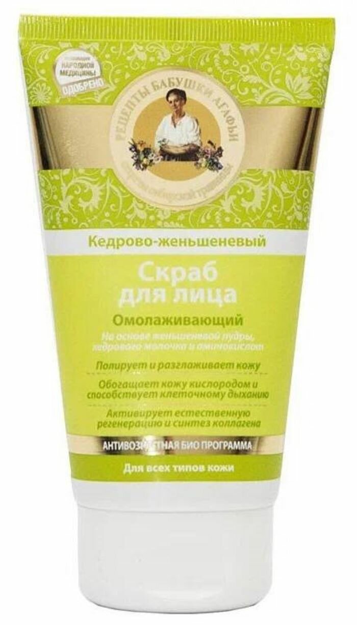 Рецепты бабушки Агафьи Скраб для лица омолаживающий кедрово-женьшеневый 150 мл интересное: