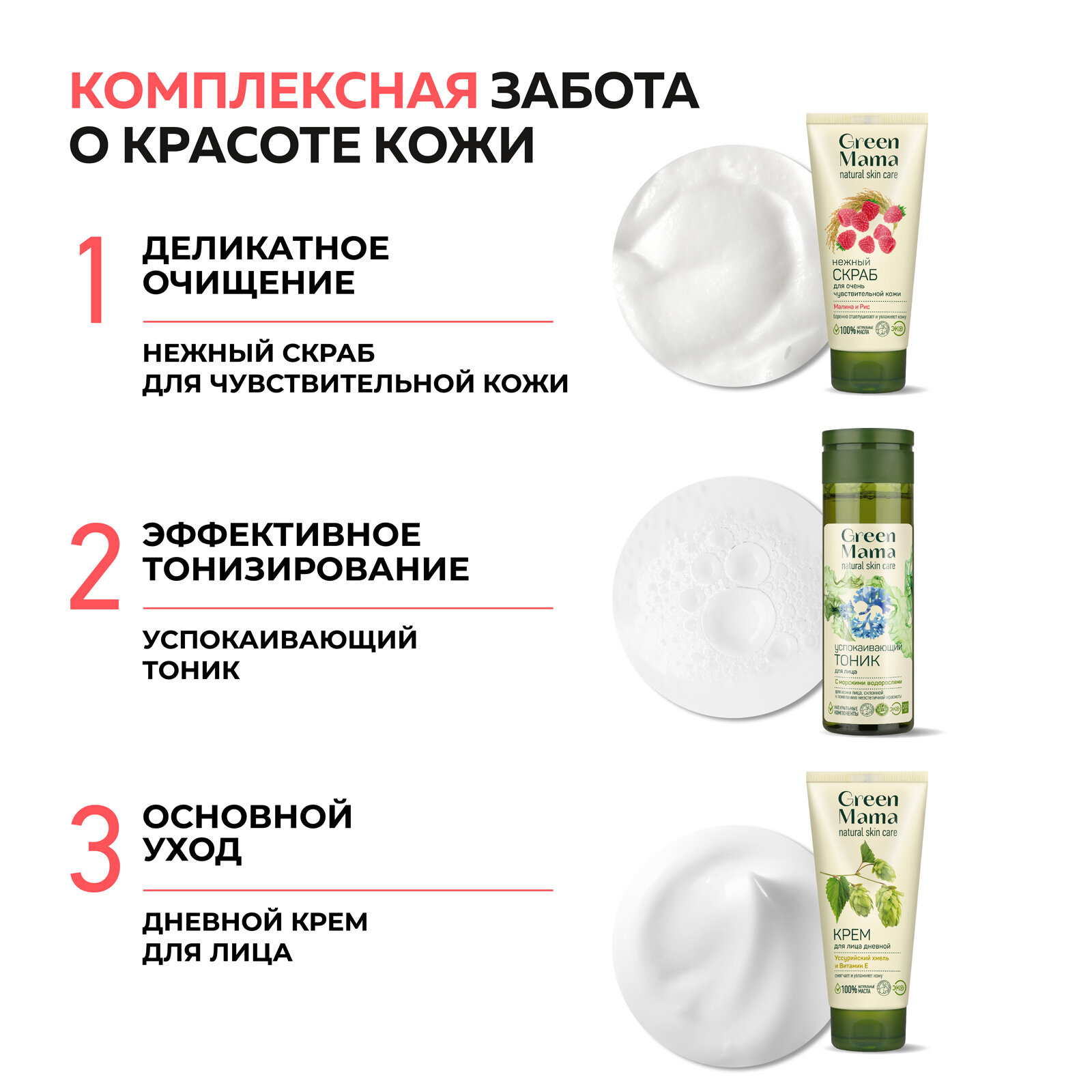 Скраб для лица для очень чувствительной кожи GREEN MAMA малина и рис нежный 100 мл - 2 шт интересное: