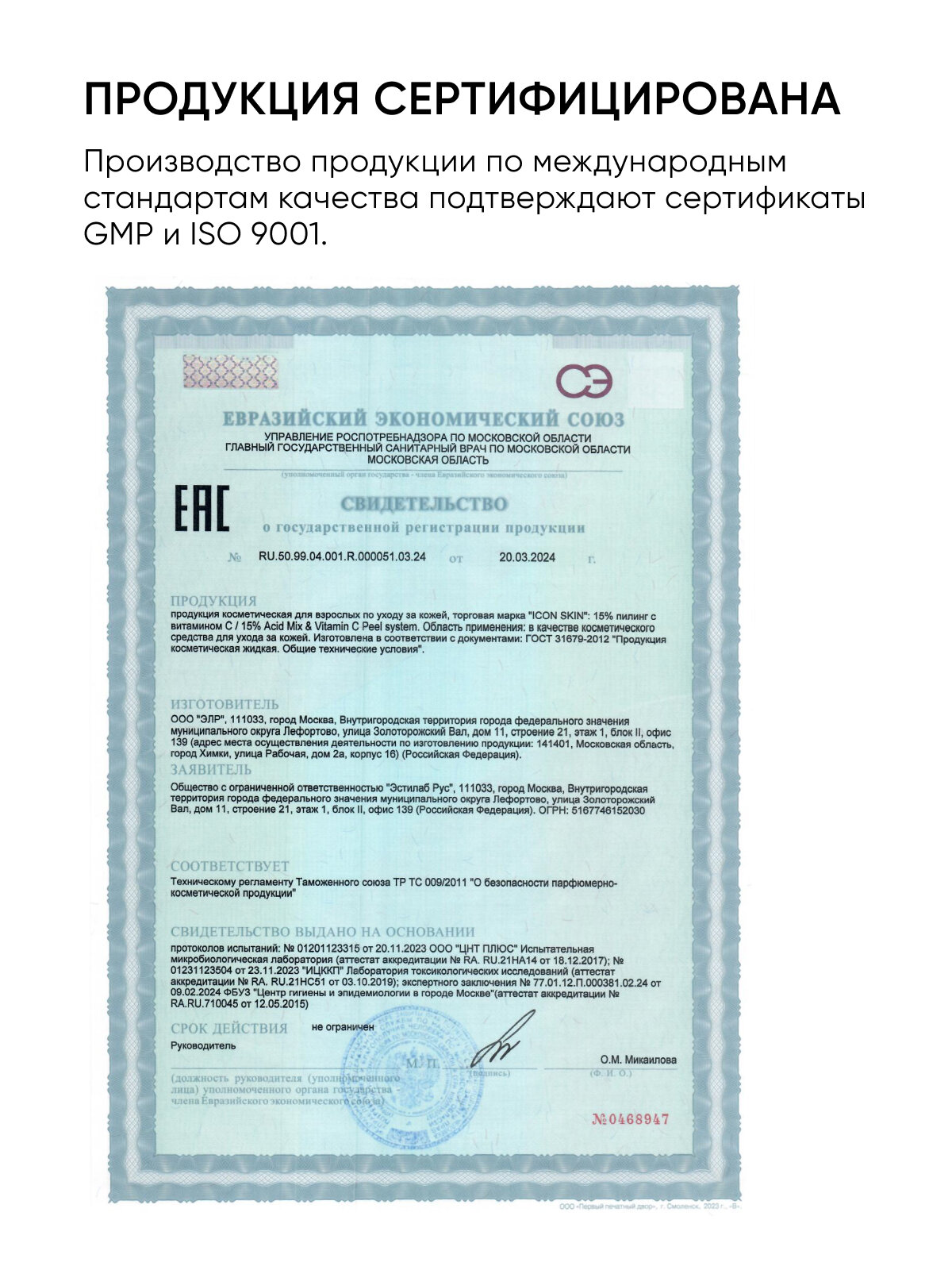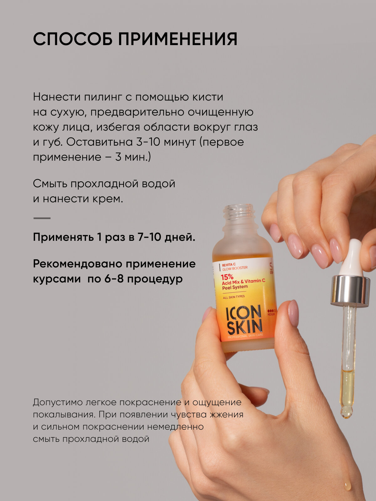 Пилинг для лица с комплексом 7 кислот 15% и витамином С для всех типов кожи ICON SKIN RE: VITA С, 30 мл интересное: