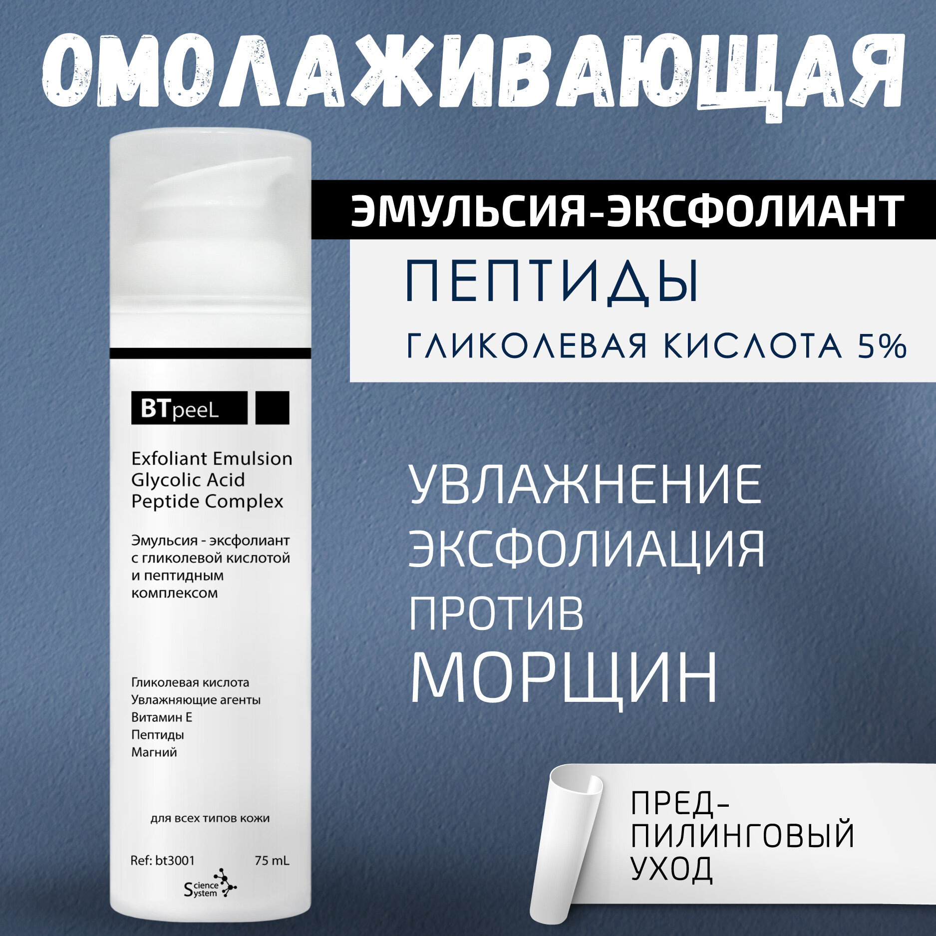 Эмульсия-эксфолиант с гликолевой кислотой и пептидным комплексом BTpeel 75 мл интересное: