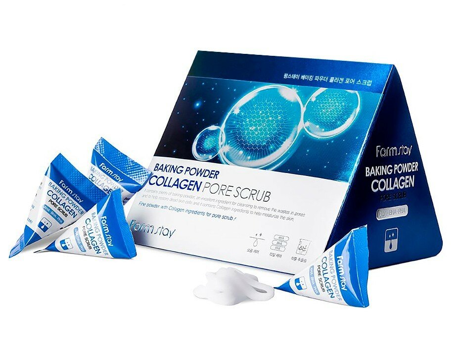 Купить FarmStay Baking Powder Collagen Pore Scrub Скраб в пирамидках для очищения пор с содой Упаковка (25шт)