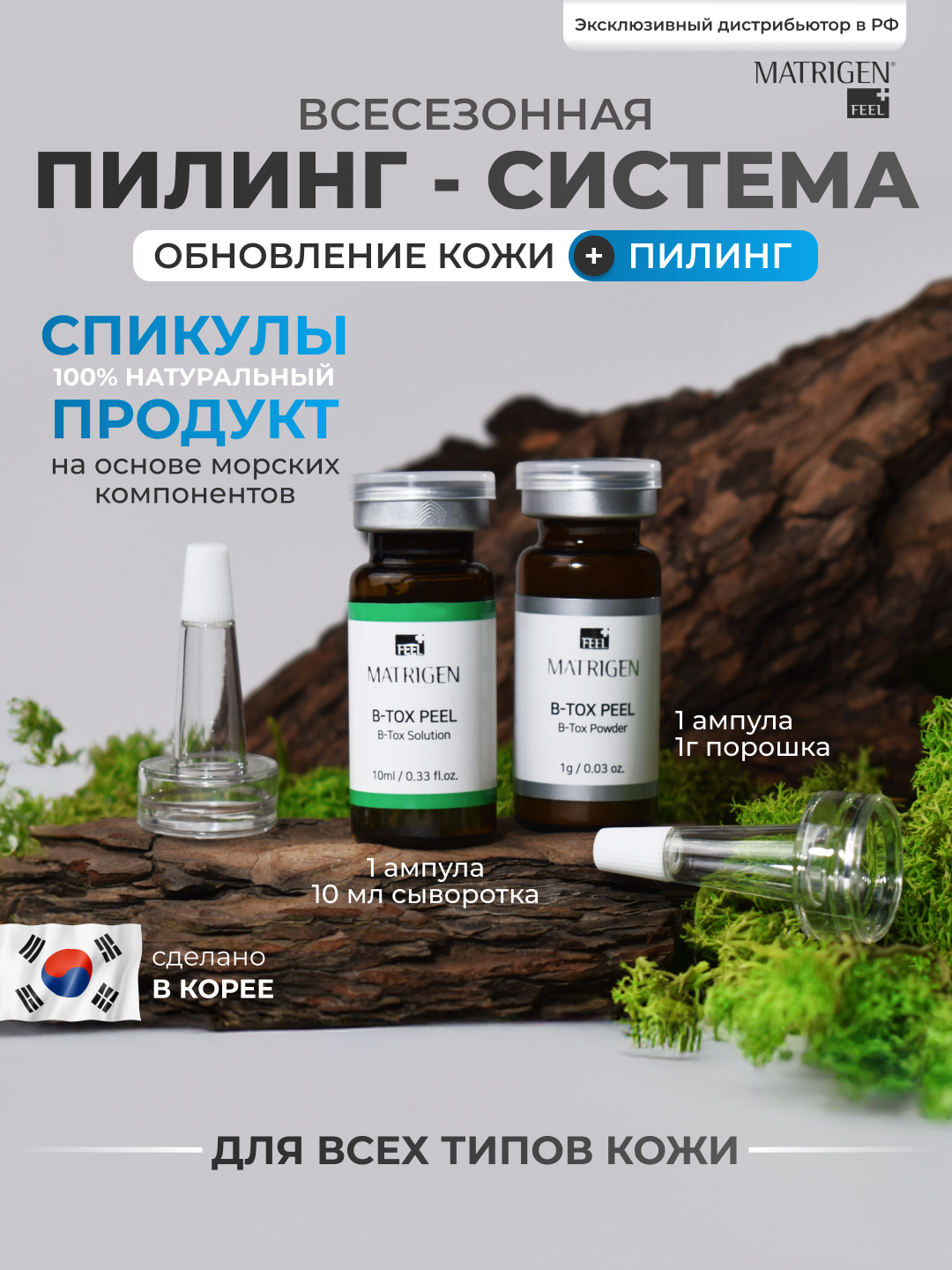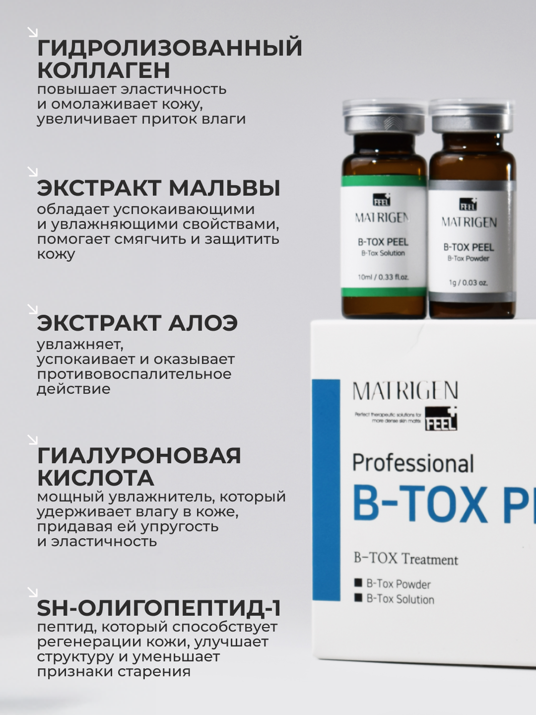 Matrigen B-TOX PEEL Powder & Solution Ампулы с эффектом ботокса и пилинга, 2 ампулы интересное: