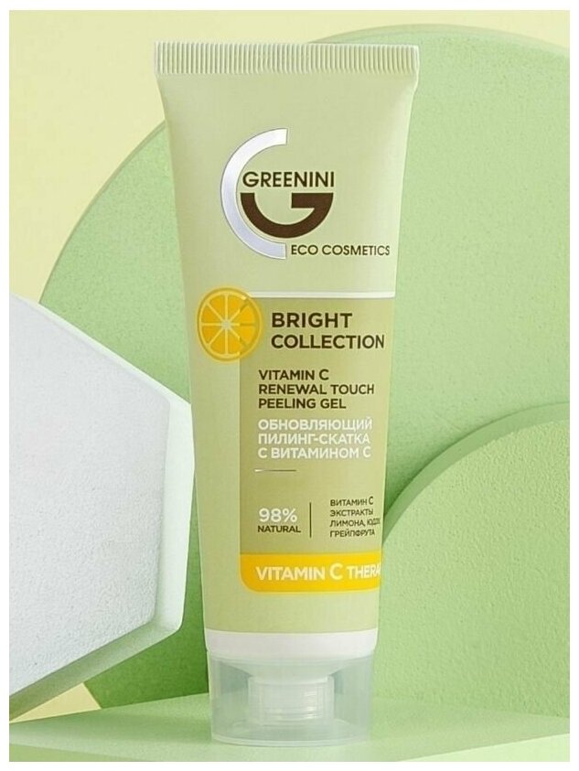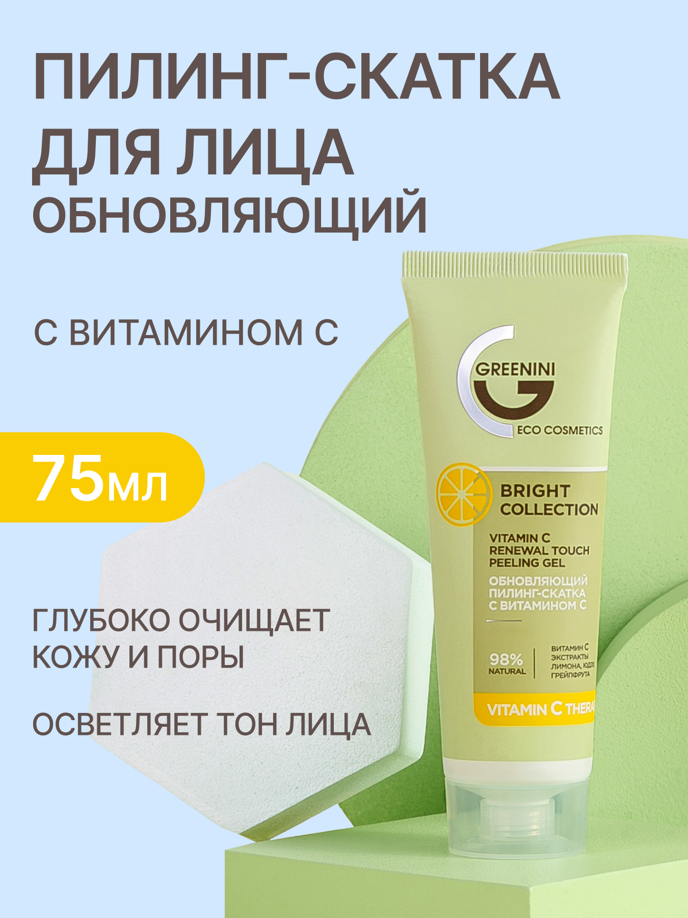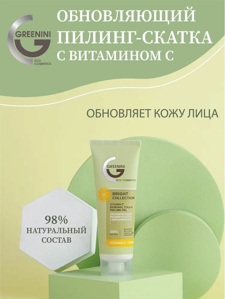 Greenini Обновляющий пилинг-скатка с витамином С для бережного очищения кожи лица 98% Natural 75мл интересное: