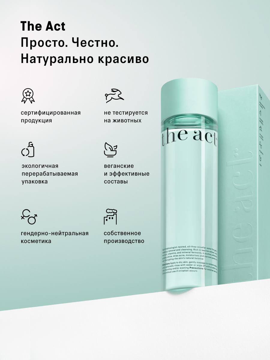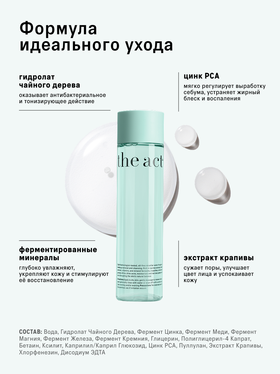 Мицеллярная вода The Act для комбинированной и жирной кожи, себорегулирующая 250 мл интересное: