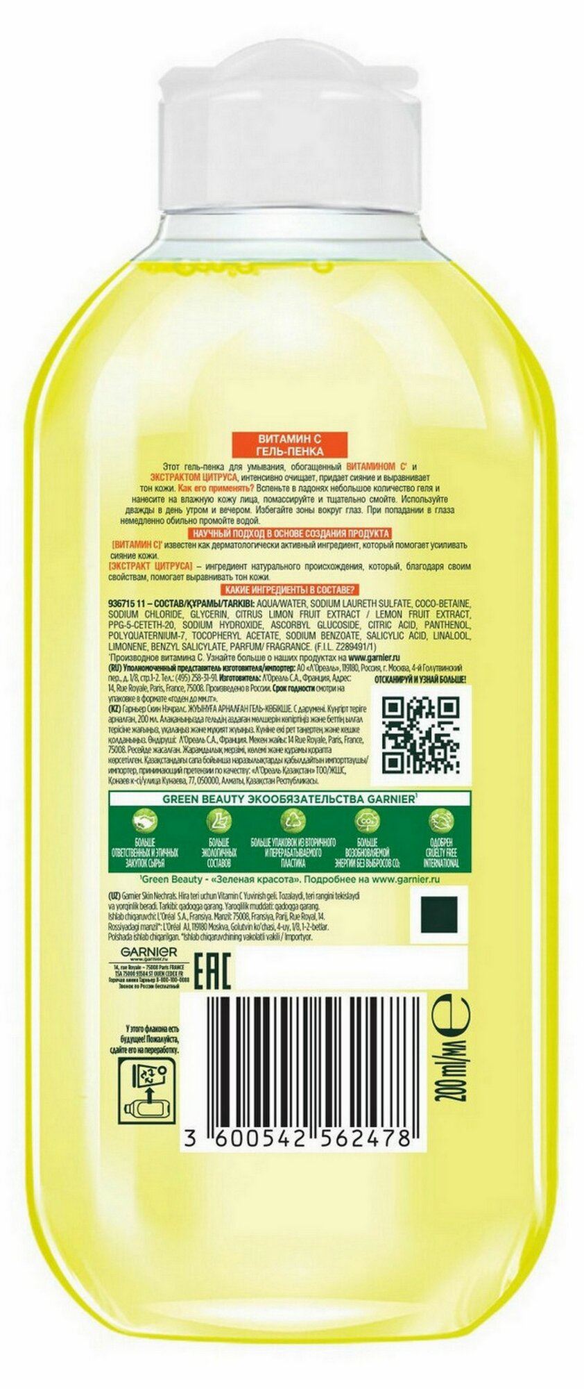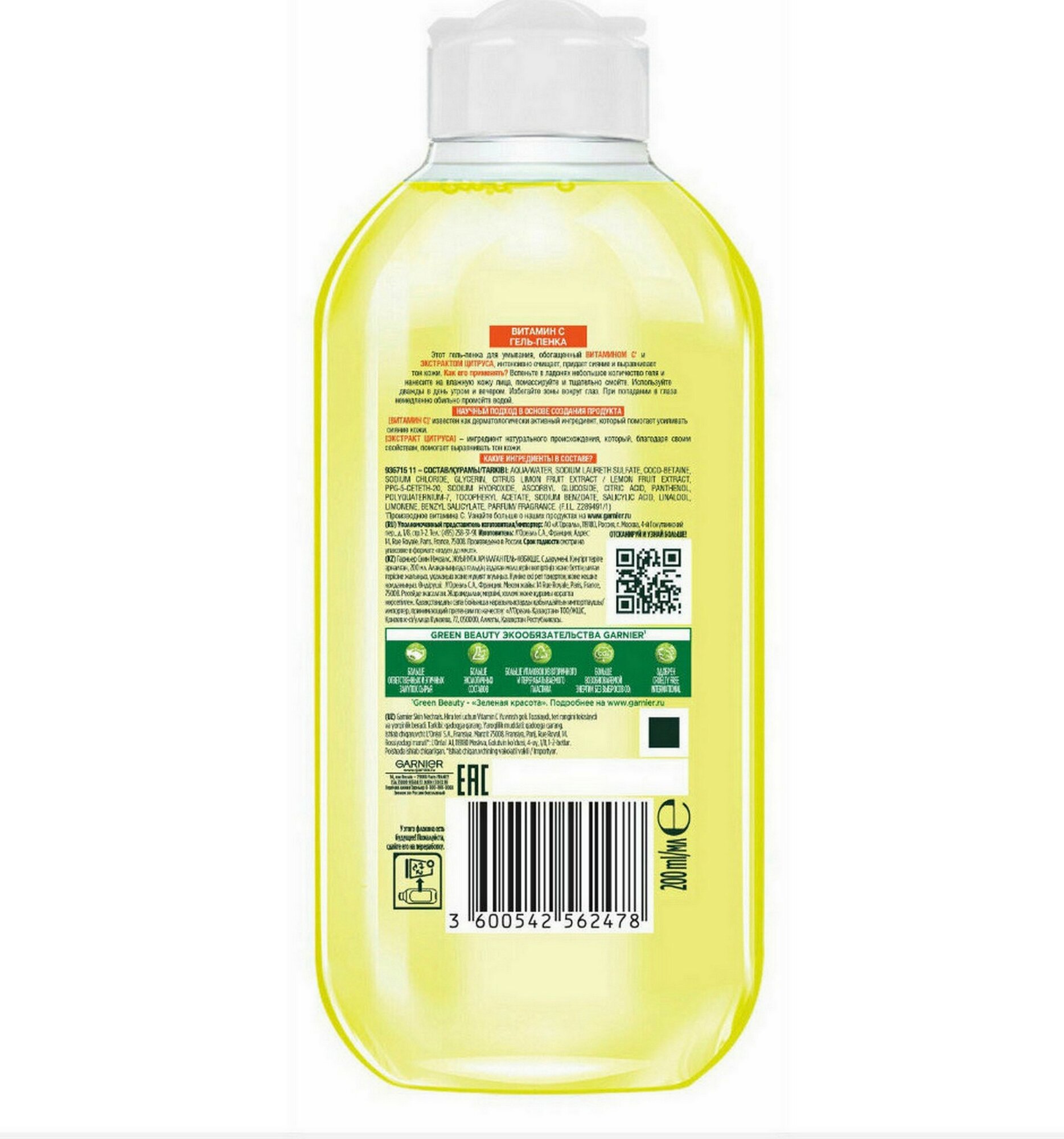 GARNIER Гель-пенка для лица с Витамином С и Экстрактом Цитруса для всех типов кожи, 200 мл, 200 г интересное:
