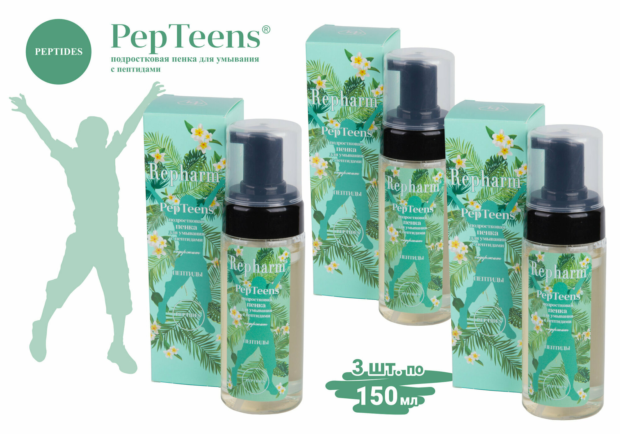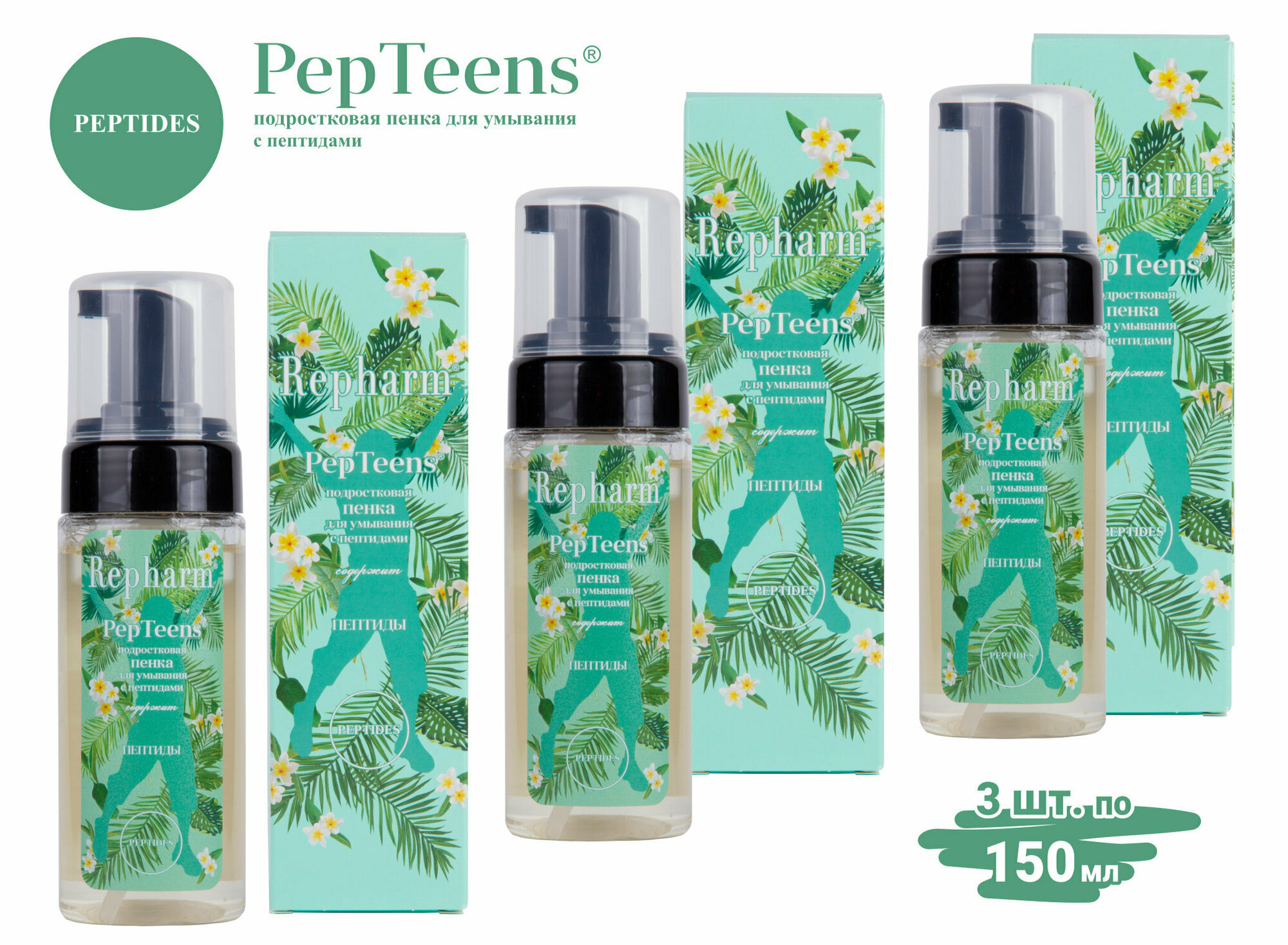 Купить Пенка Repharm PepTeens ® (пептинс) подростковая для умывания с пептидами, 150 мл - 3 шт