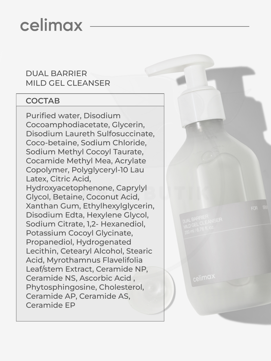 Купить Гель-пенка для умывания с комплексом керамидов | Celimax Dual Barrier Mild Gel Cleanser 200ml
