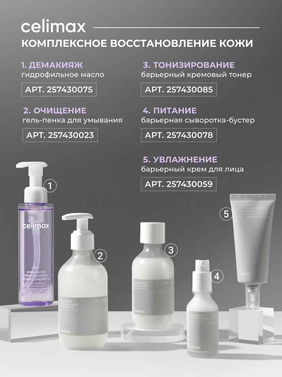 СохранитьГель-пенка для умывания с комплексом керамидов | Celimax Dual Barrier Mild Gel Cleanser 200ml интересное: