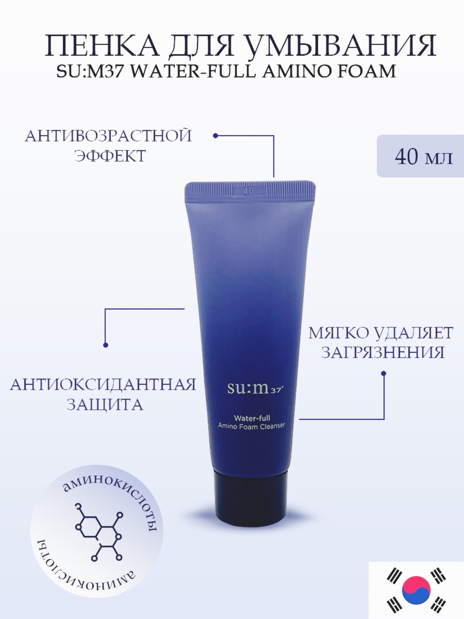 Пенка для умывания Su: m37 Water-full Amino Foam миниатюра 40мл интересное:
