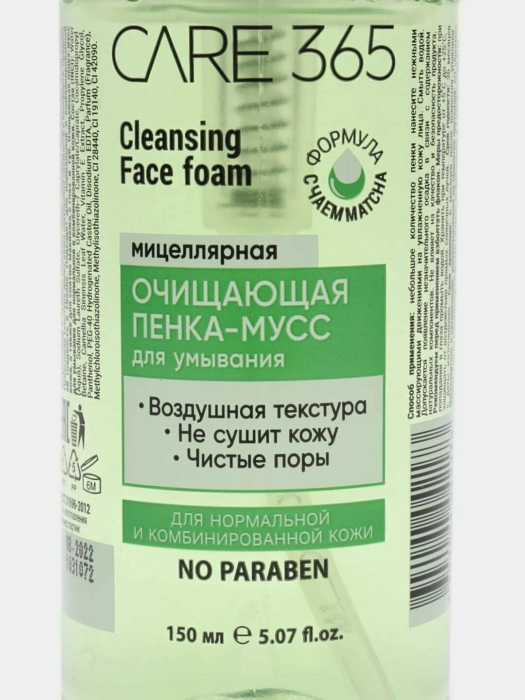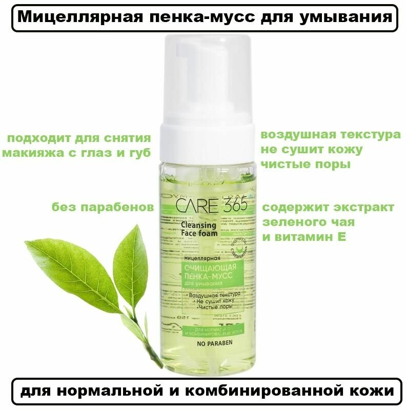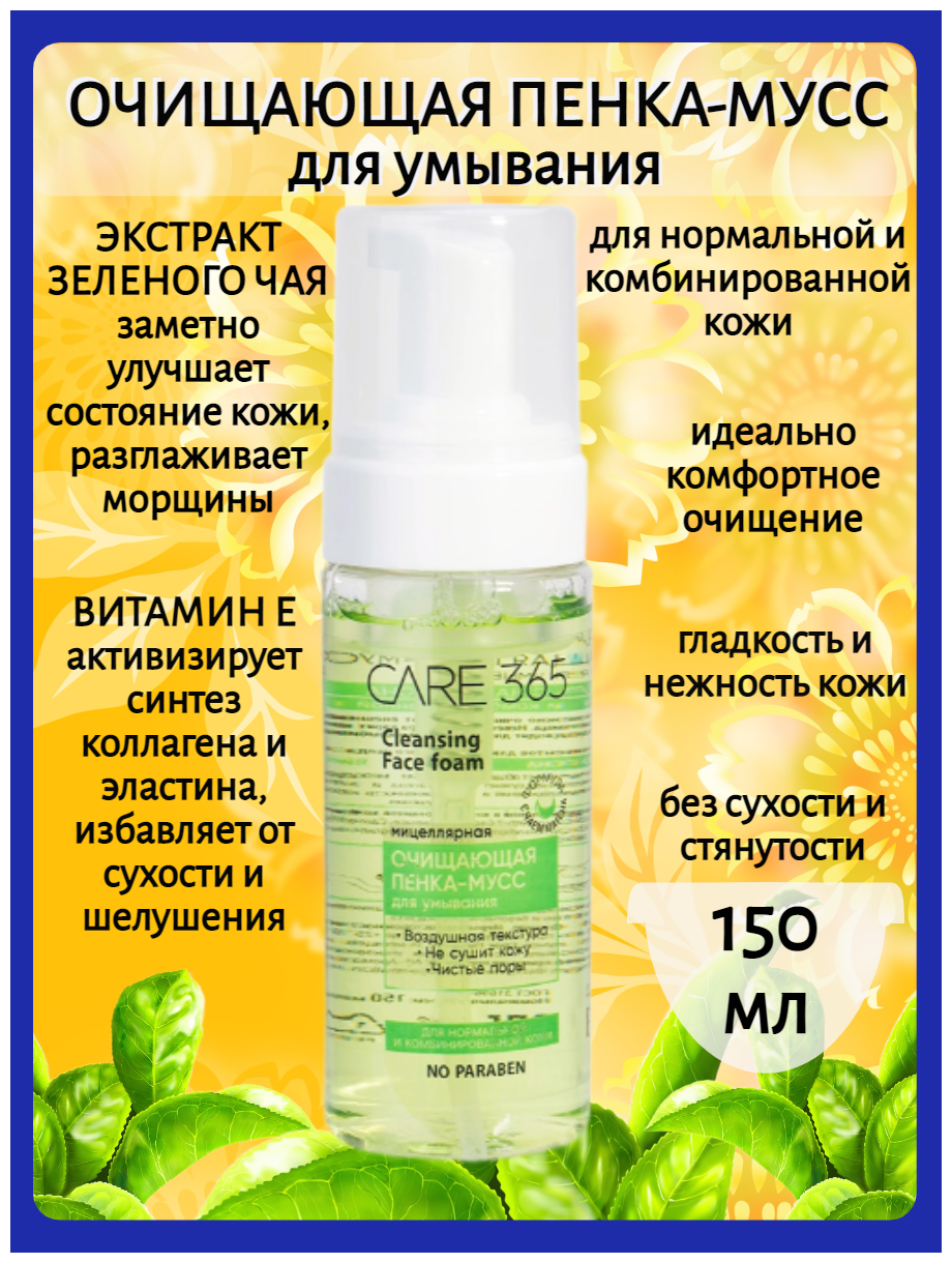 Очищающая пенка-мусс Care 365 CLEAN FACE, для нормальной и комбинированной кожи 150 мл. интересное: