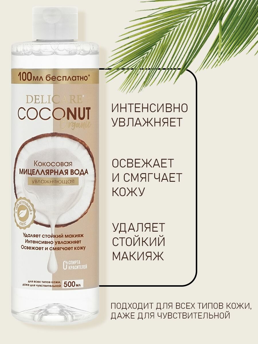 Мицеллярная вода DELICARE Coconut, для чувствительной кожи, без спирта, 500 мл интересное: