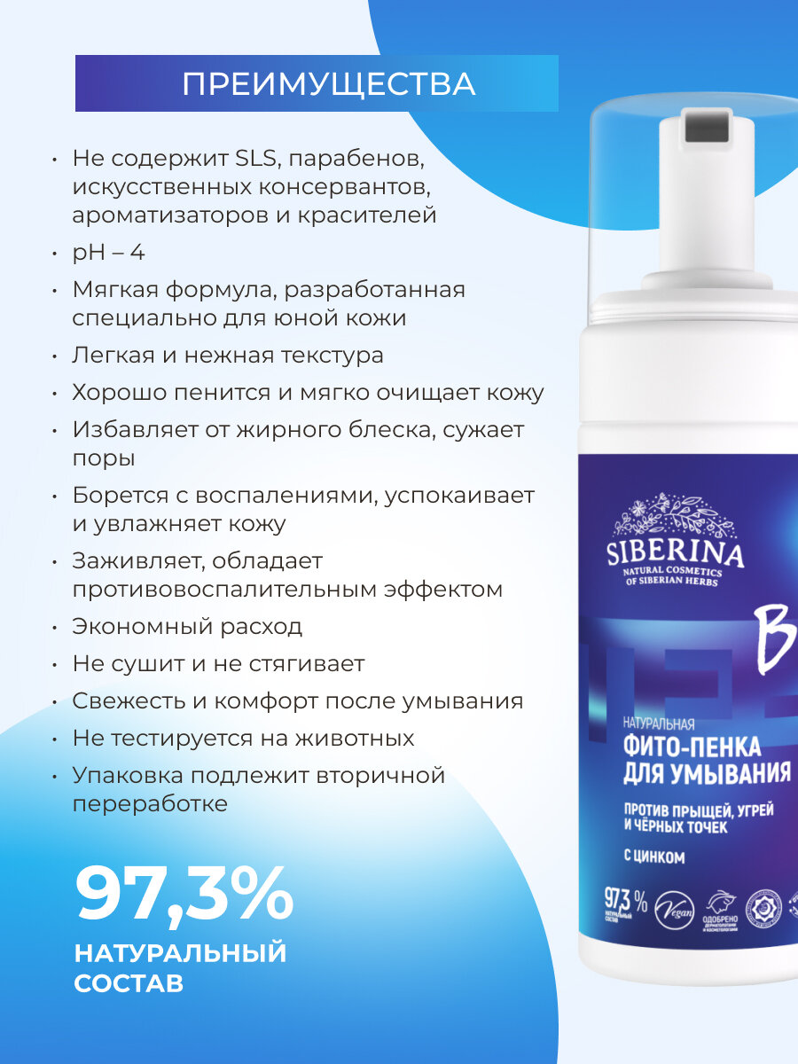 Siberina Фито-пенка для умывания против прыщей, угрей и чёрных точек с цинком интересное: