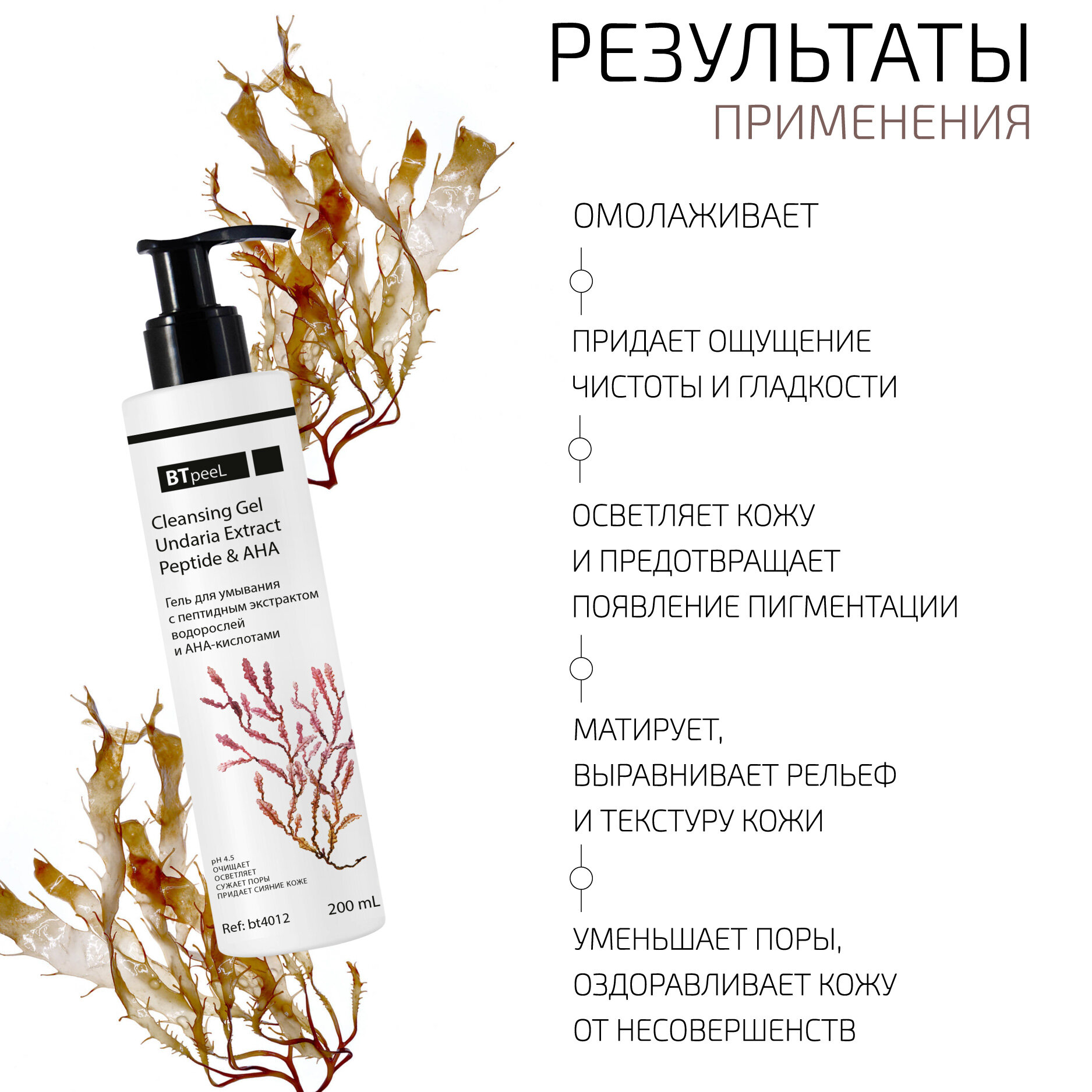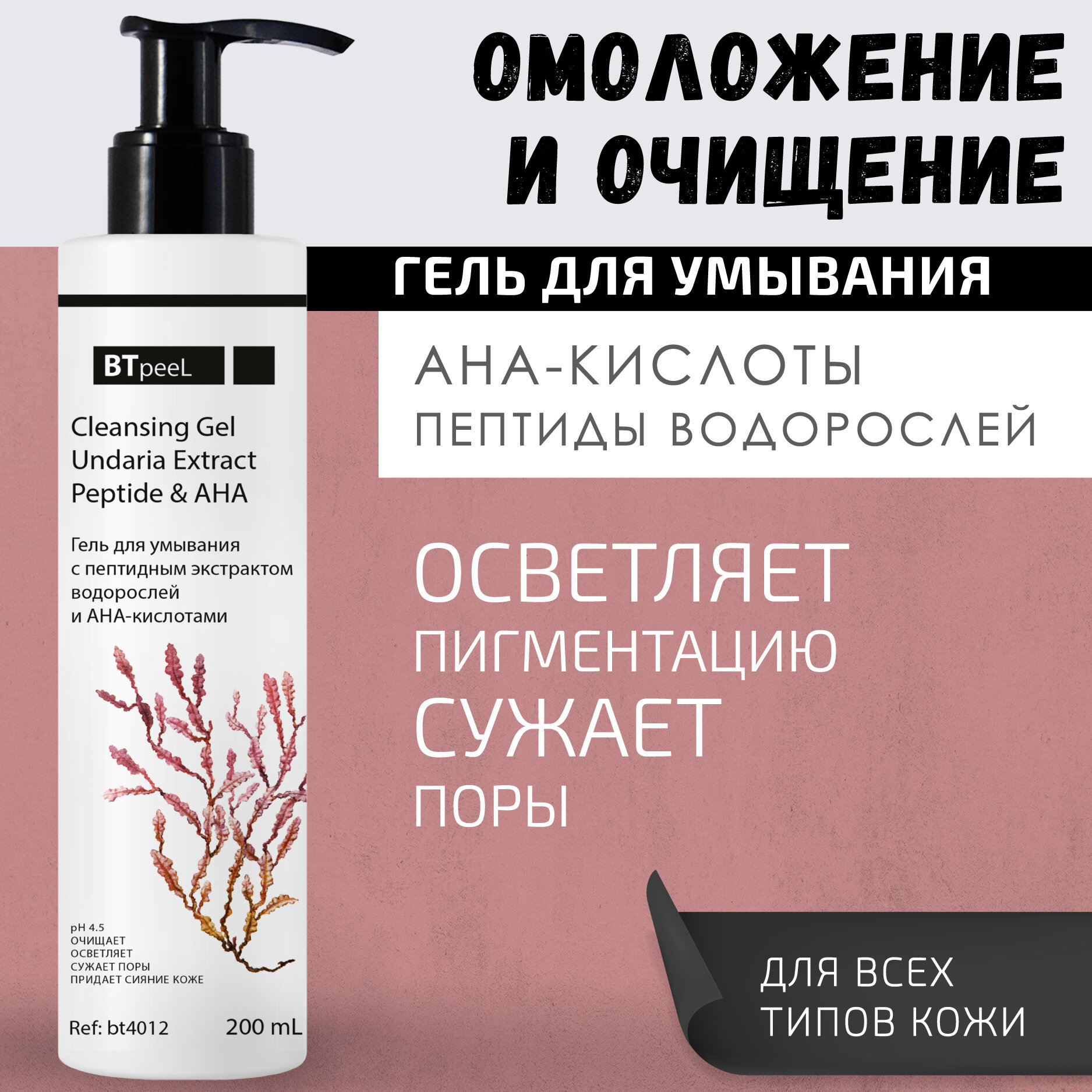 Гель для умывания с пептидным экстрактом водорослей и АНА-кислотами BTpeel, 200 мл интересное: