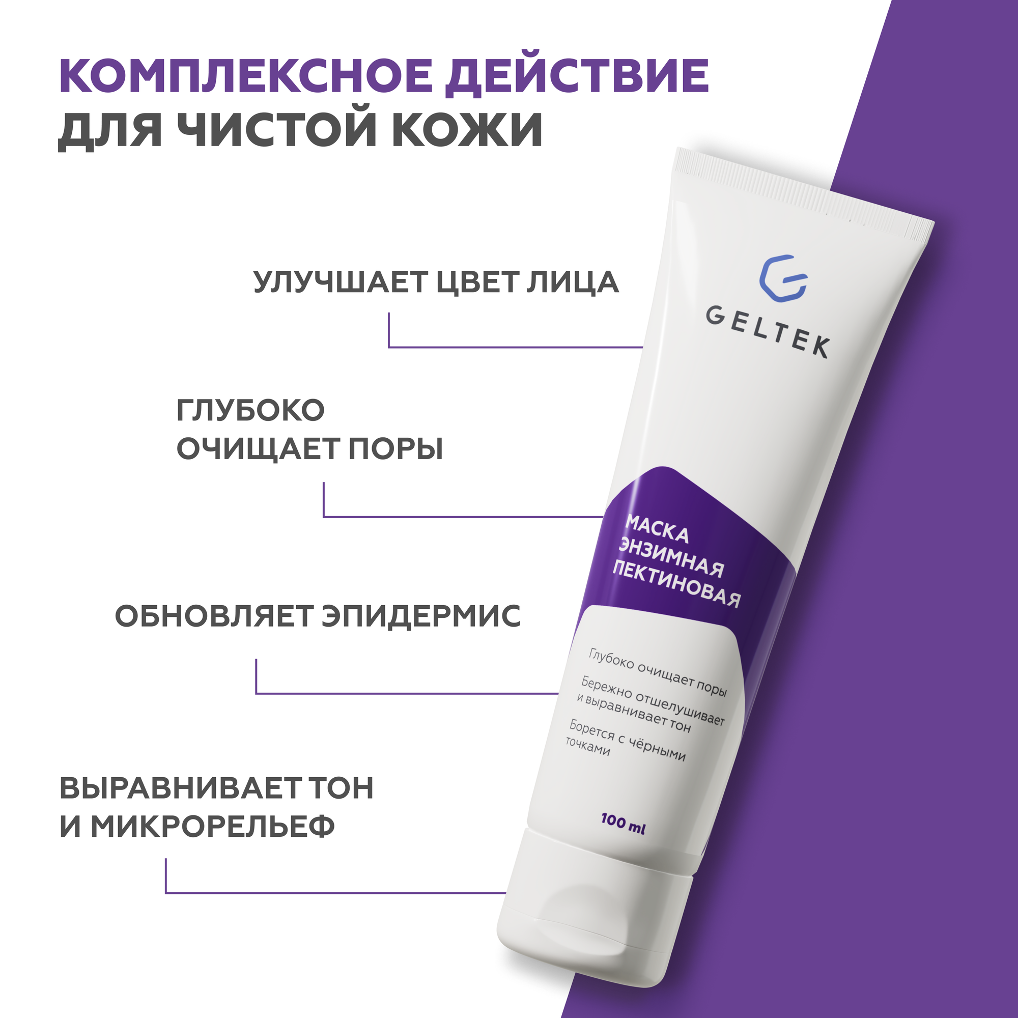 Купить Гельтек Очищающая маска для лица энзимная пектиновая против прыщей и черных точек, пилинг с пектином, 100 мл