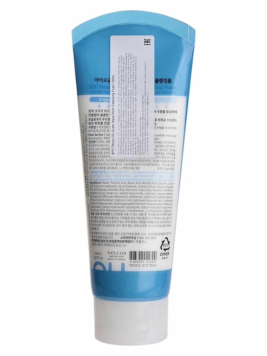 Купить WELCOS Пенка для лица увлажняющая с гиалуроновой кислотой IOU Super Aqua Moist Cleansing Foam, 150мл