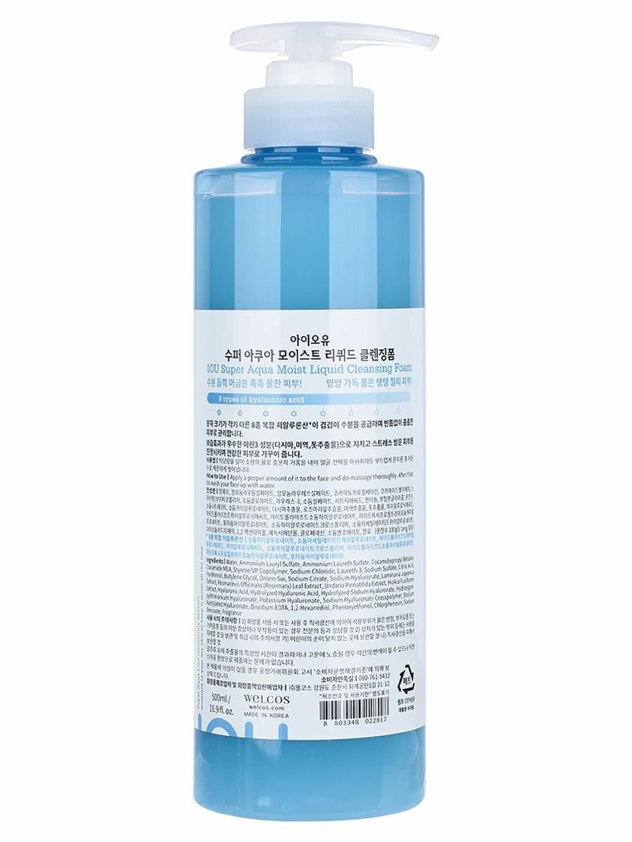 Купить WELCOS Пенка для лица увлажняющая с дозатором IOU Super Aqua Moist Liquid Cleansing Foam, 500мл