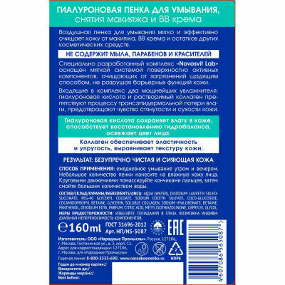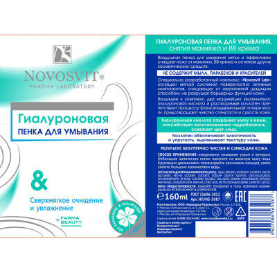 Novosvit Гиалуроновая пенка для умывания, снятия макияжа и BB крема 160мл. интересное: