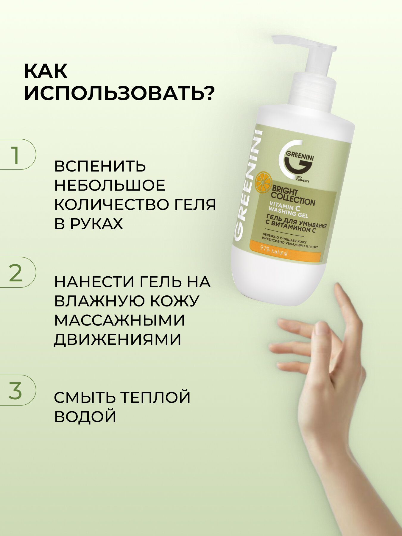 Greenini Гель для умывания с витамином С для бережного очищения кожи лица 97% Natural 250мл интересное: