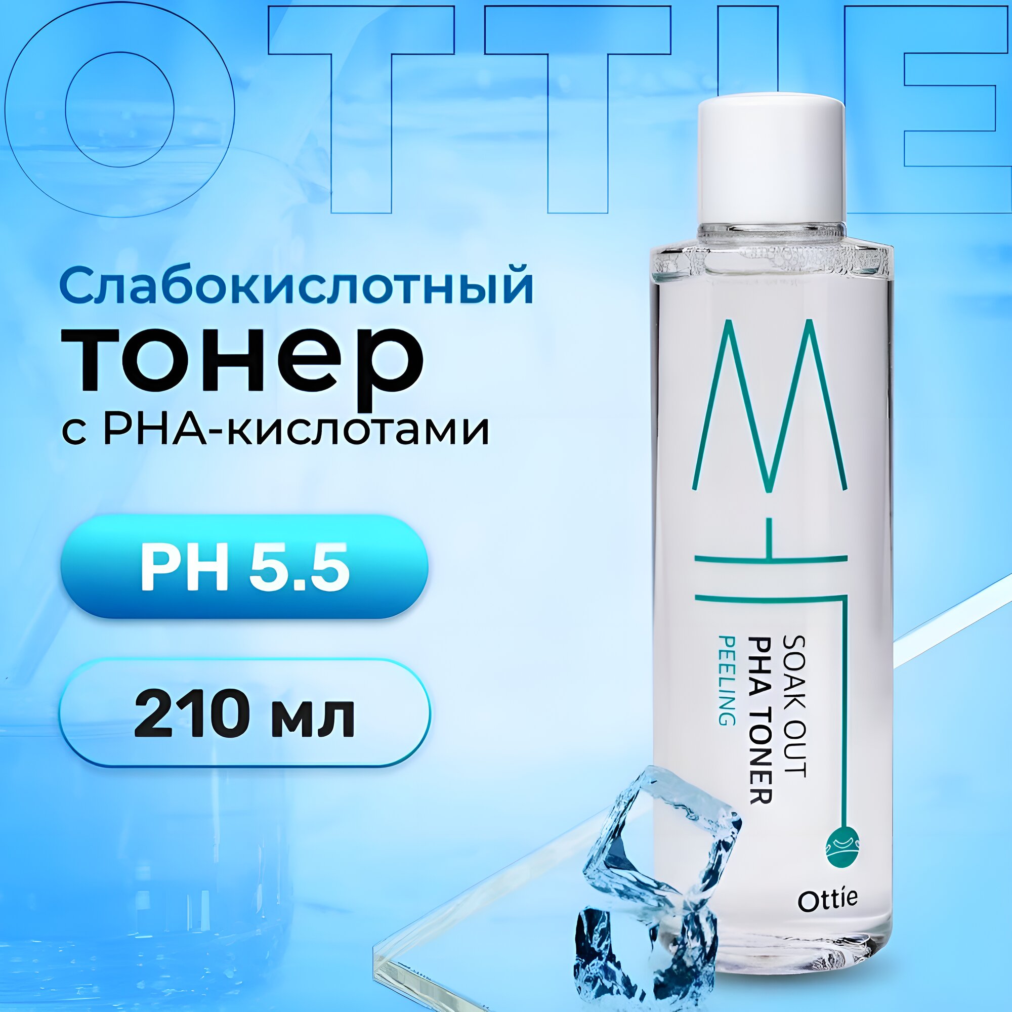 Купить Ottie Тонер-пилинг с PHA-кислотами Soak Out PHA Toner Peeling, 210мл Оригинал.