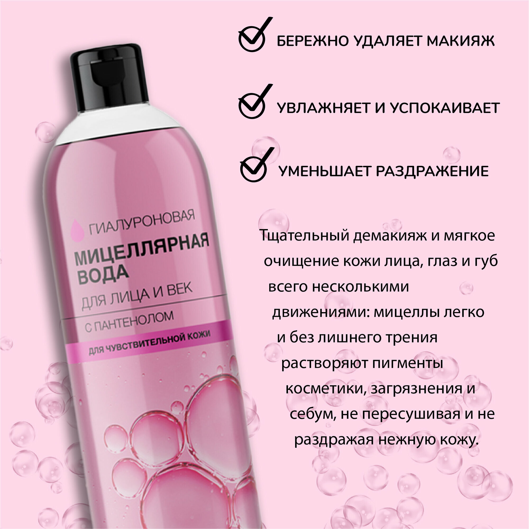 Белита-М Гиалуроновая мицеллярная вода для лица и век с пантенолом для чувствительной кожи, 400 мл интересное: