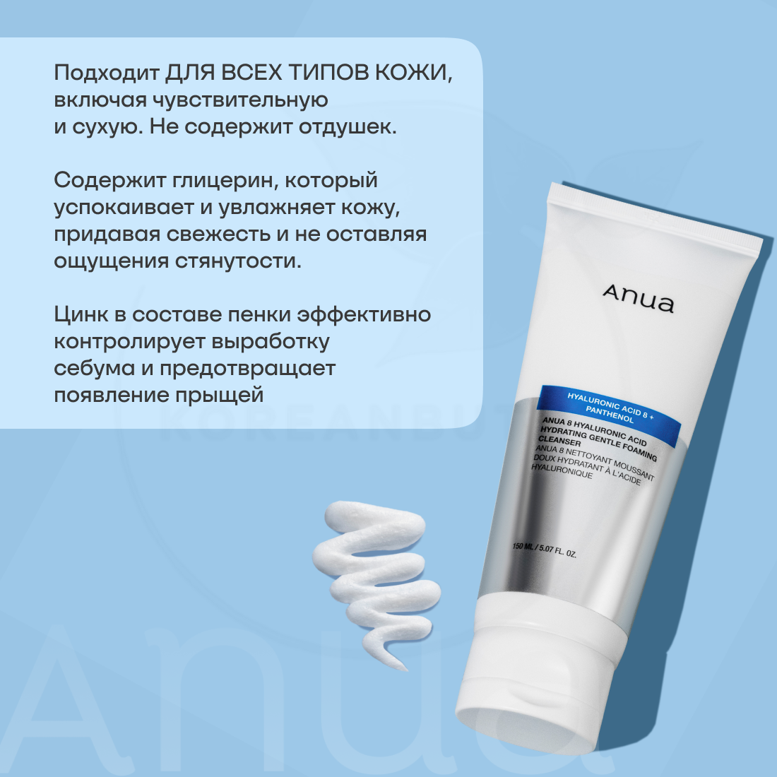 Пенка для умывания с гиалуроновой кислотой | ANUA Hydrating Gentle Foaming Cleanser 150мл интересное: