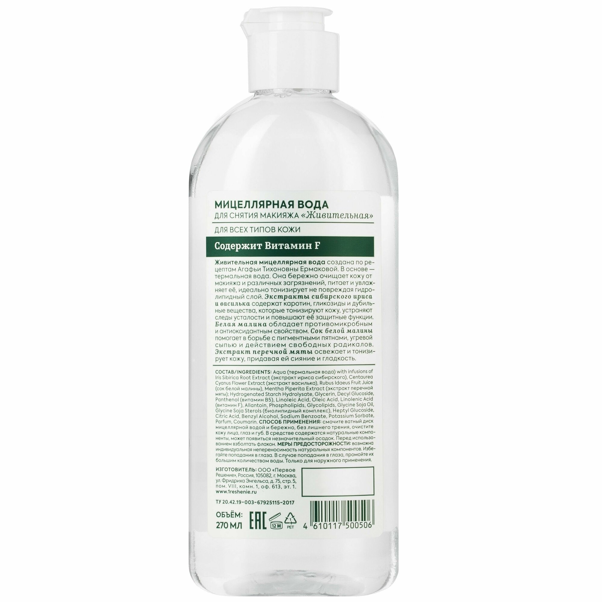 Купить Рецепты бабушки Агафьи Аптечка Агафьи Мицеллярная вода для снятия макияжа для всех типов кожи "Живительная", 270 мл