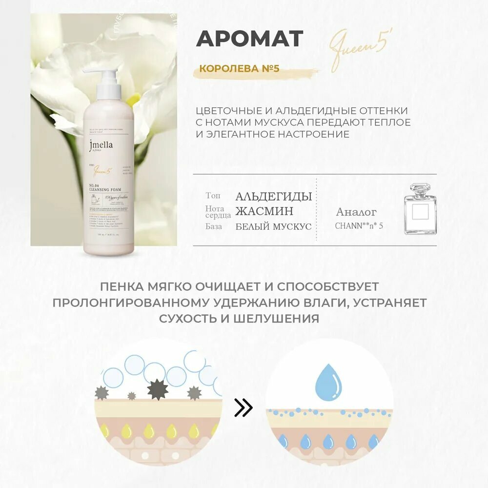 JMELLA IN FRANCE QUEEN 5 Парфюмированная очищающая пенка для лица с ароматом жасмина, 500 мл интересное: