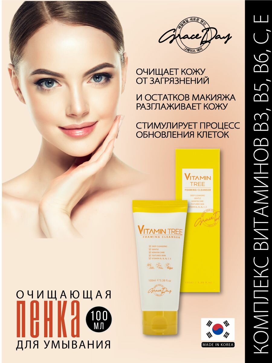Grace Day Очищающая пенка для умывания, для ухода за кожей лица, для снятия остатков макияжа с витаминами, корейская косметика. 100мл интересное: