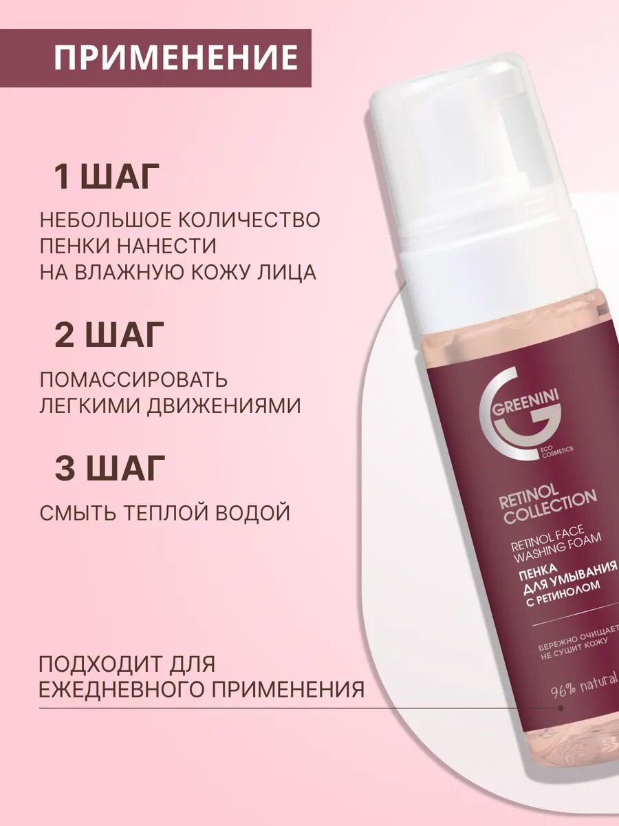 Пенка для умывания Greenini, с ретинолом, для всех типов кожи, 170 мл интересное: