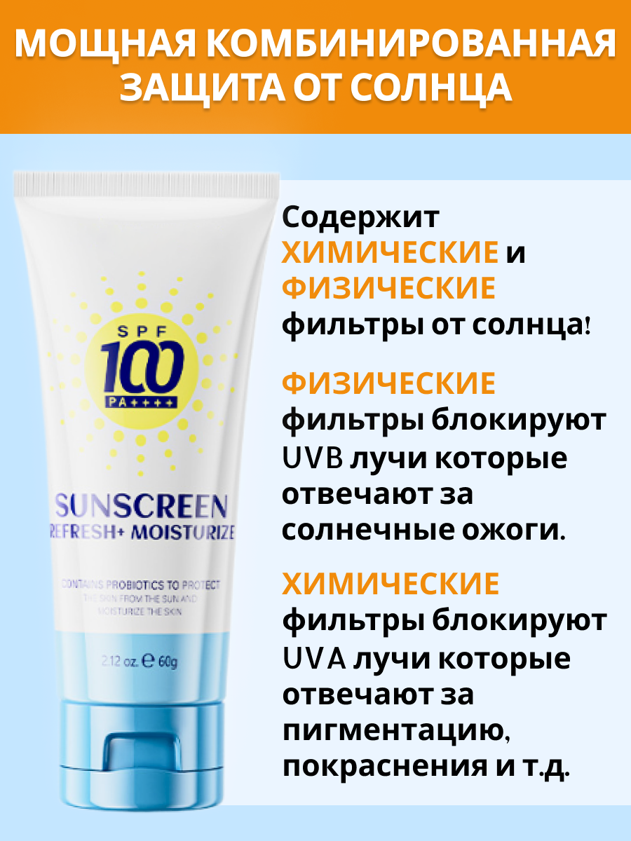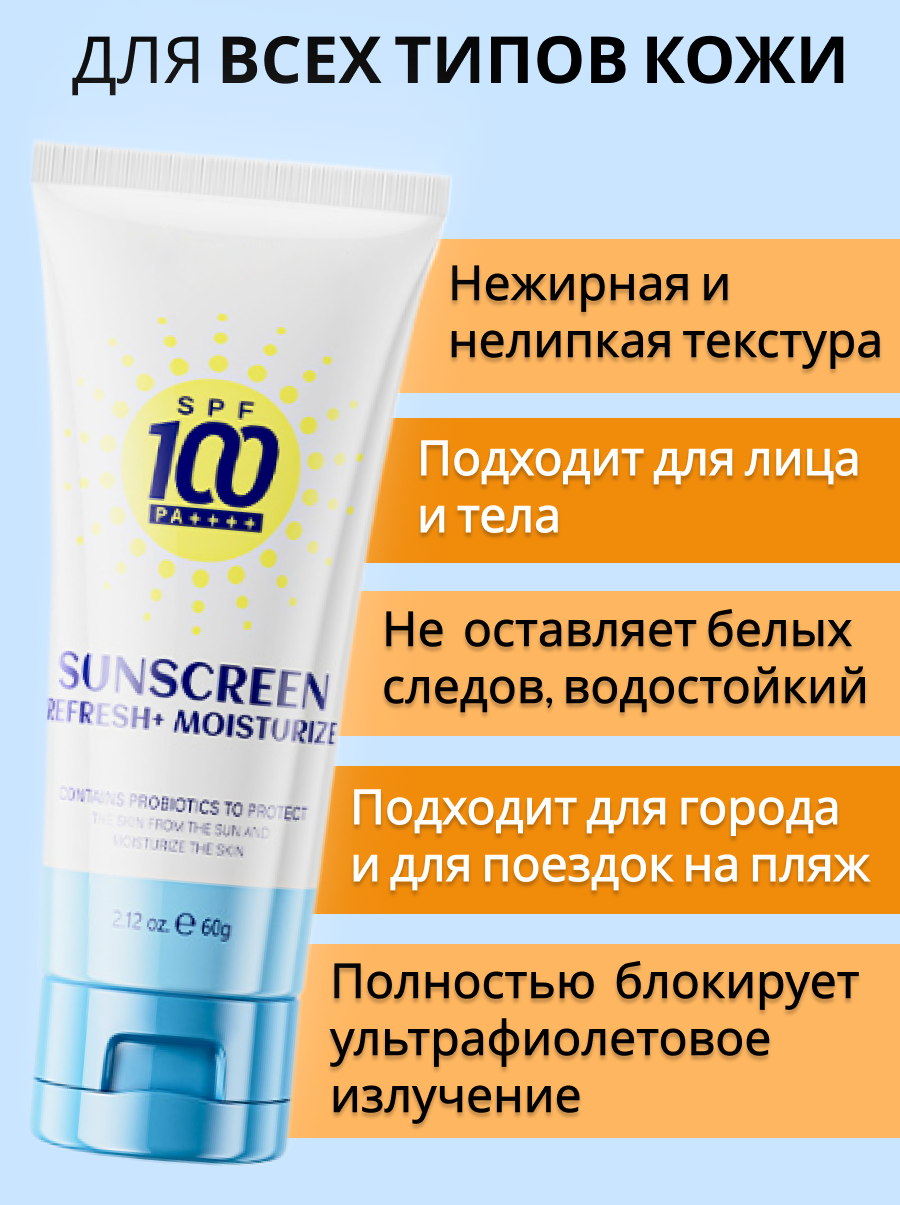 Солнцезащитный крем SPF 100 РА++++, для всех типов кожи, некомедогенный , водостойкий, 60мл интересное: