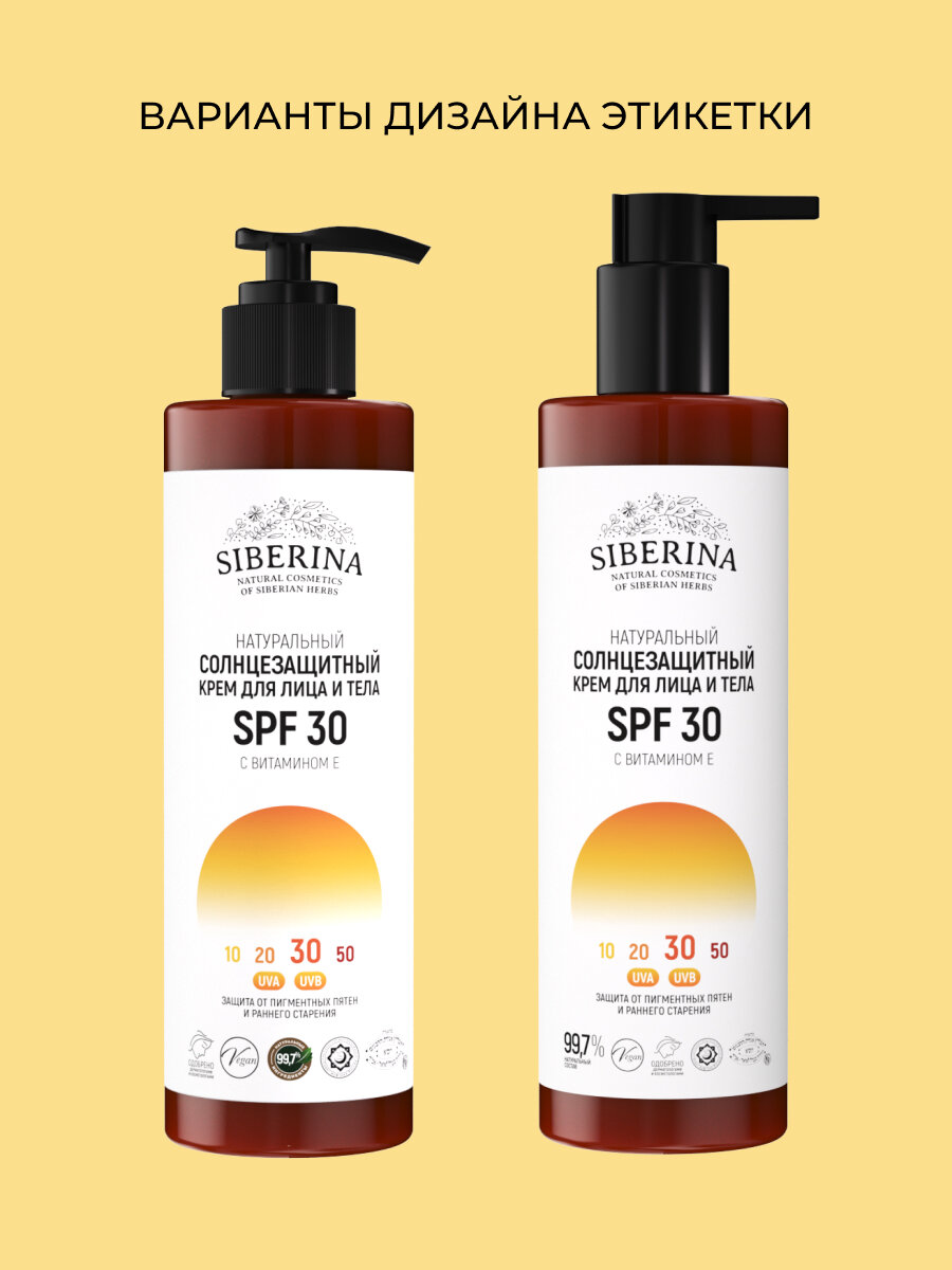 Купить Siberina Натуральный солнцезащитный крем для лица и тела SPF 30 с витамином Е 200 мл