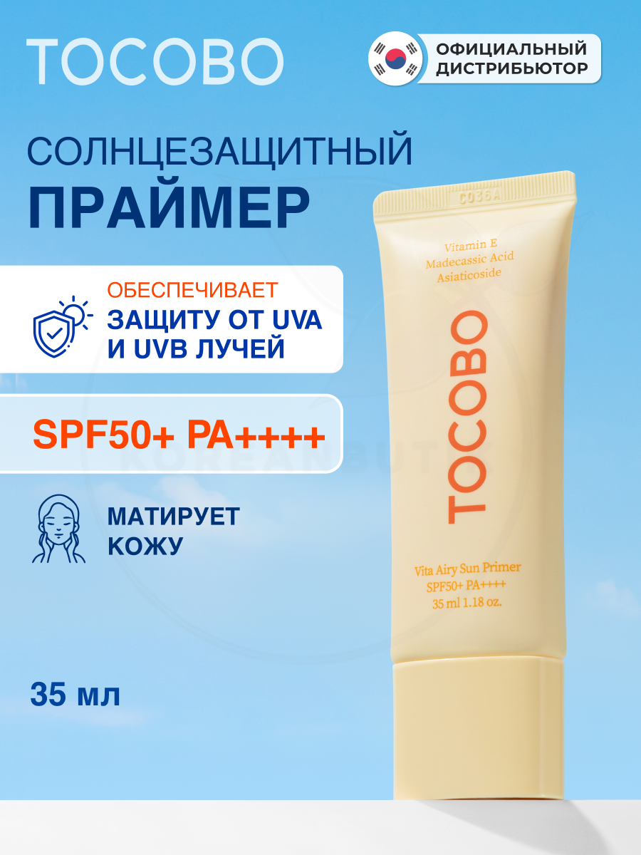 Крем-праймер солнцезащитный для лица| Tocobo Vita Airy Sun Primer SPF50+ PA++++ 35 ml интересное: