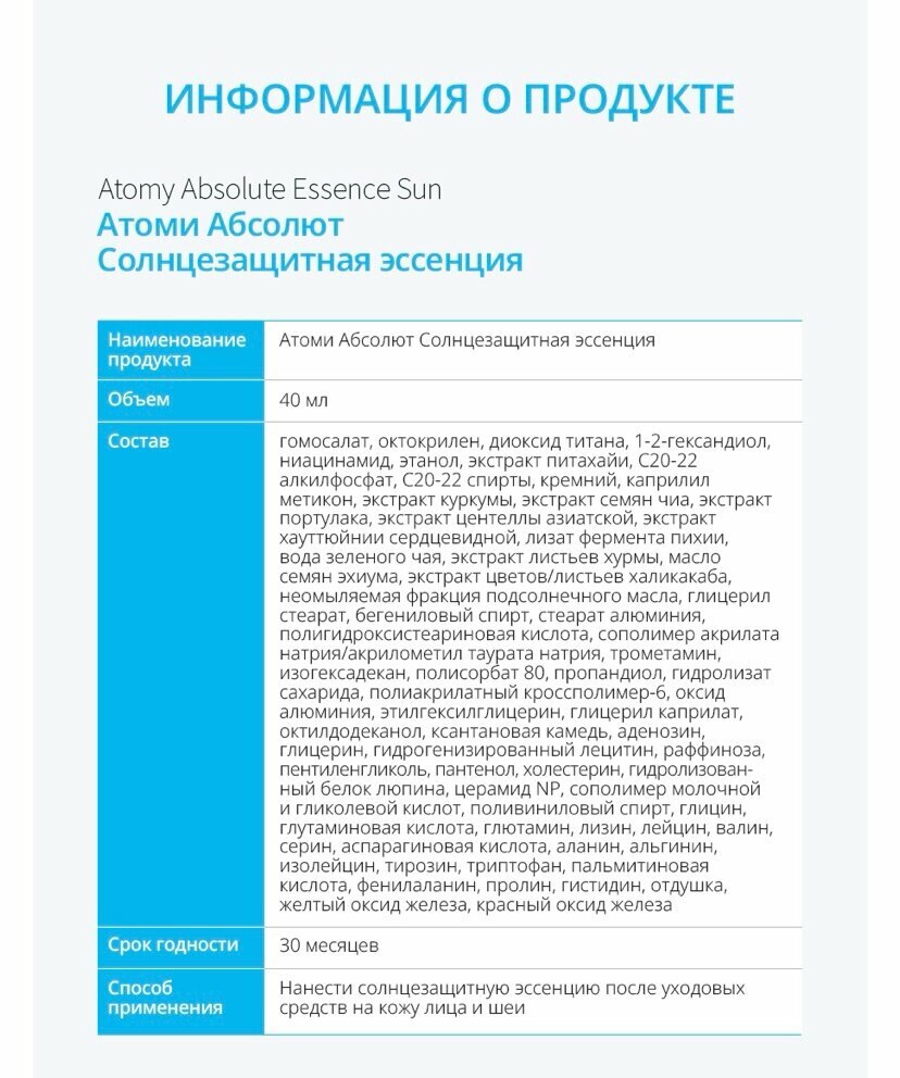 Солнцезащитная эссенция Атоми Абсолют/Atomy Sunscreen SPF50+ PA+++ интересное: